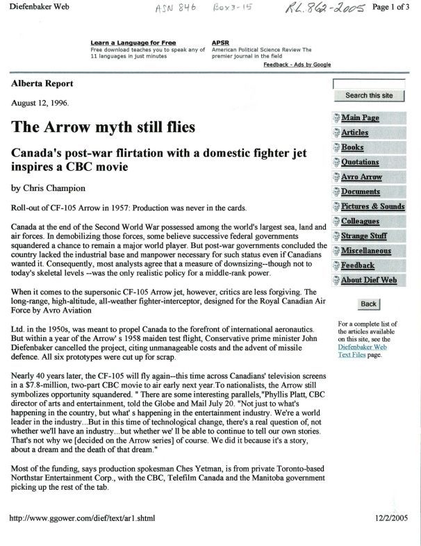 From Diefenbaker web - Alberta Report 12 Aug 1996