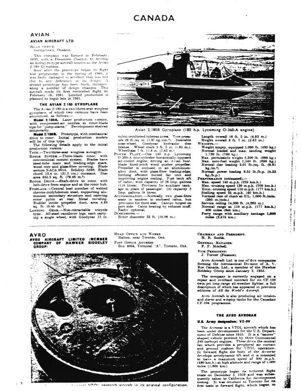 Photo of Avrocar and Avian Gyroplane. Names include Fred P. Mitchell, H.R. Smith, J. Turner