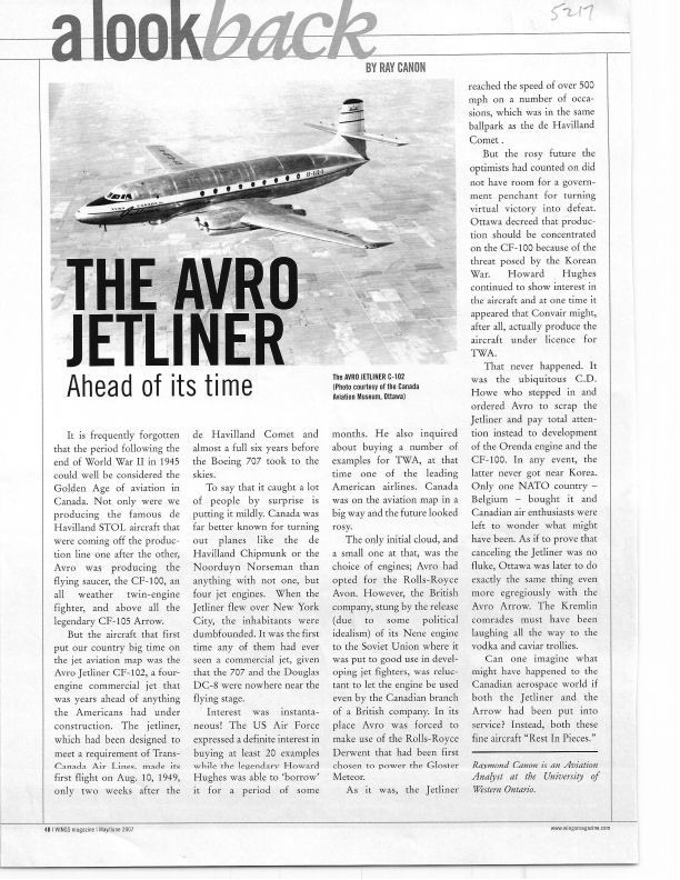 Story describes how Jetliner was ahead of its time, and died at the hand of CD Howe.Publication Details