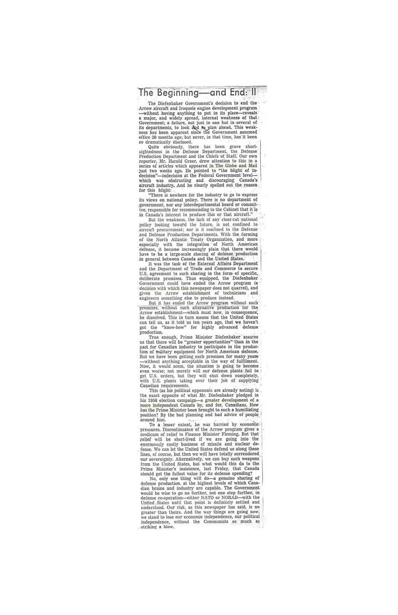 Globe and Mail report on how the cancellation brings about an end to Canada's political independence
