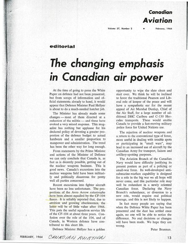 The changing emphasis in Canadian air powerEntry/Object ID