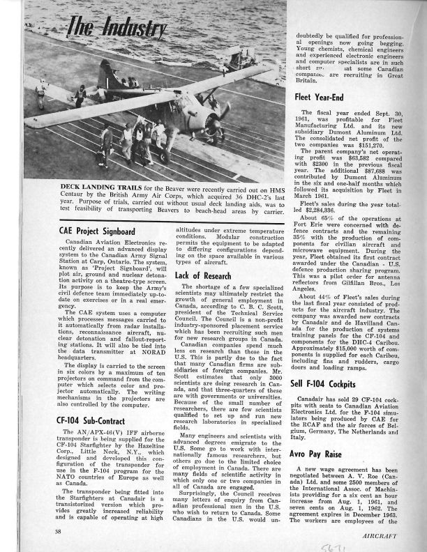 pg. 38 - Avro Pay Raise - Magazine announcement of new wage agreement between A.V. Roe Canada Ltd. and Int'l Association of Machinists.General Notes