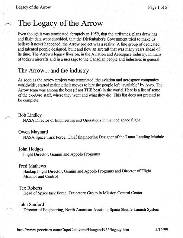 Avro to NASA, Arrow vs other planes. Article lists the following ex-Avro employees who went on to other programs.