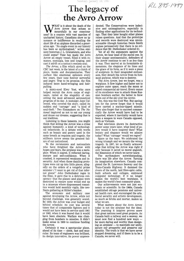 The legacy of the Avro Arrow