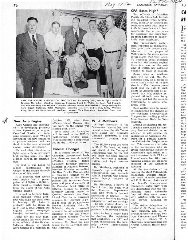 pg 76 - New Avro Engine - Crawford Gordon, Jr. announced titanium used in the construction and targeted output as well as the CF-105 as host aircraft.Publication Details