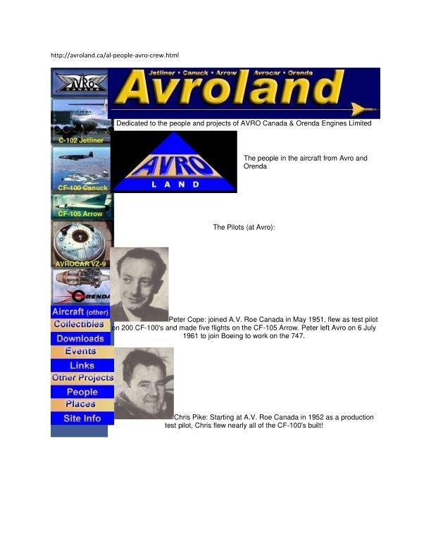 Brief description of all pilots - Names include Peter Cope, Chris Pike, Janusz Zurakowski, Mike Cooper Slipper, Don Rogers, Stan Haswell, Glen Lynes, Syd Howland, W.O. "Spud" Potocki, Bill Devine, Denny Young, Paddy Ferguson, Jimmy Orrell, Bill Waterton, F/L Bruce Warren, Len Hobbs, Jack Woodman, Fred Drinkwater III