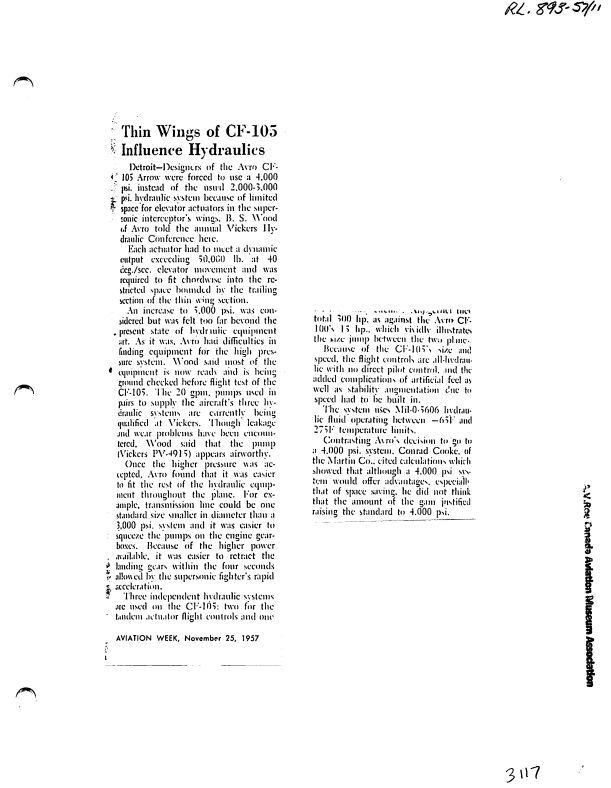 Thin Wings of CF-105 influence Hydraulics
