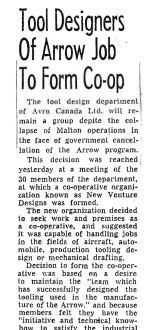 30 Tool Design department members form a co-op to meet Canada's needs. Names include Jim Kyle, Robert Mason, Ivor RichardsonGeneral Notes
