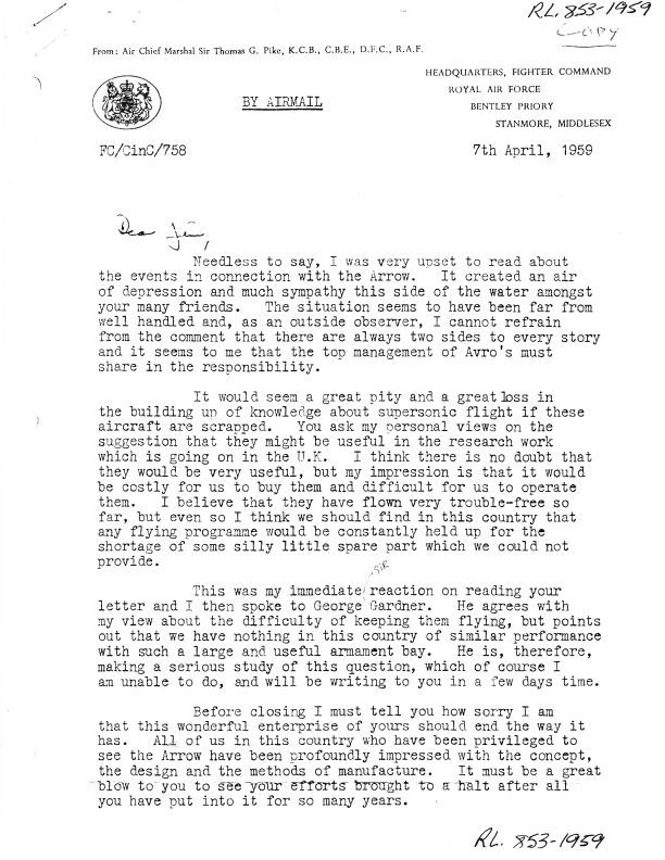Date / Time Period: 4/7/59 Pages: 2 Author: T.G. Pike Publisher: RAF