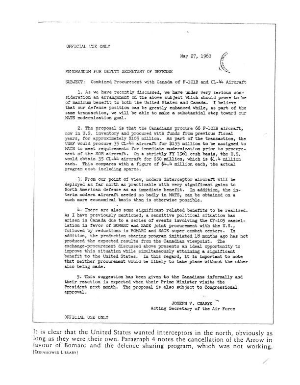 USAF Memo subject Combined Procurement with Canda of F-101B and CL-44