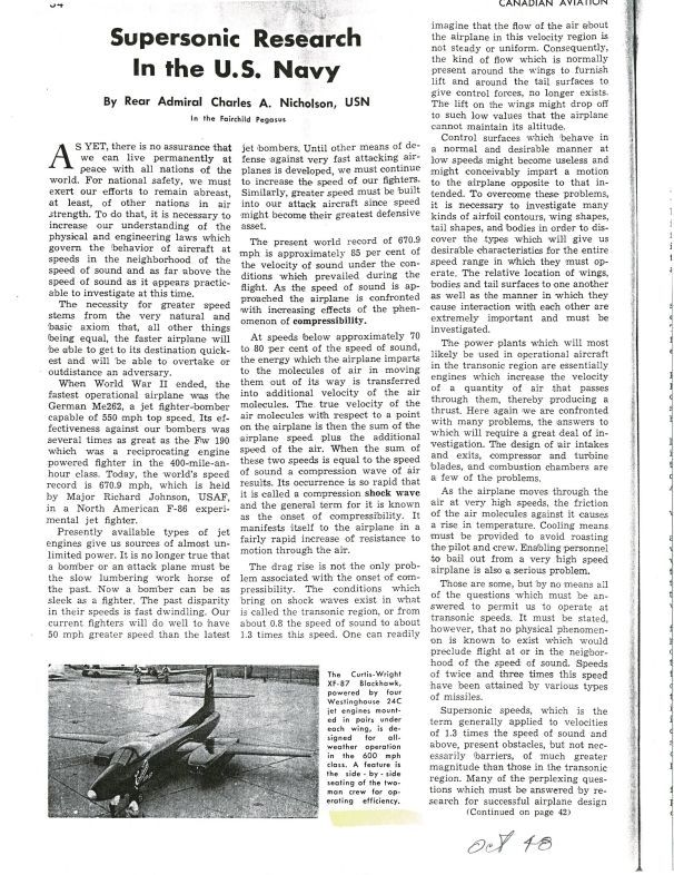 Misc News stories includes pg 93 Sep/47 Canadian Aviation with Sweptback Jet Fighter with image of XP-86. Nothing directly related to Avro - provided to show general developments at the time