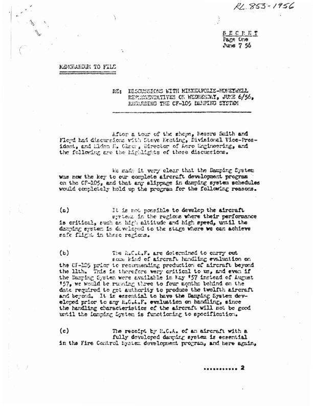 Minutes of discussions held on the CF-105 Damping System