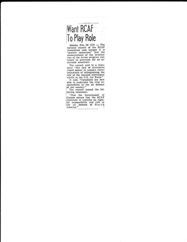 RCAF concerned about future role of the RCAF in the air defense of North America