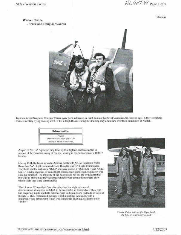 Biographical story of the Twins including a CF-100 pilot