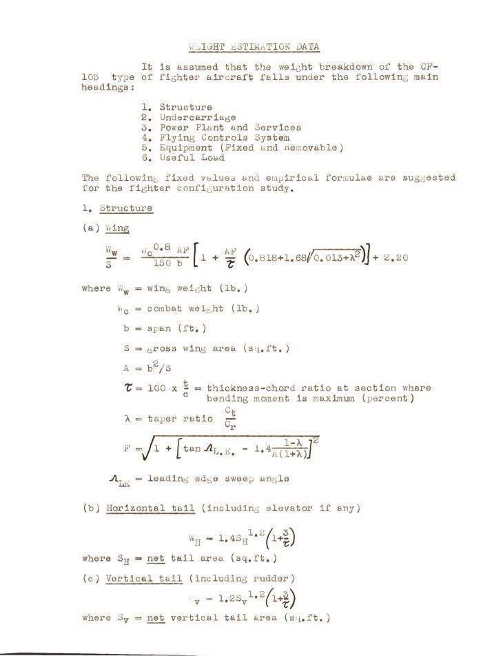 Several sheets showing wight calculation formulas for various major components