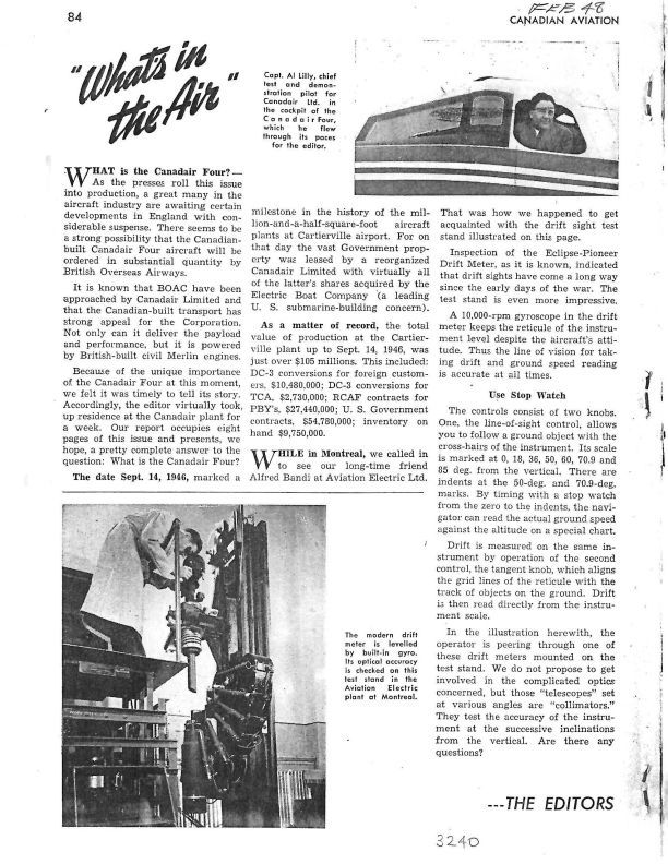 pg 84 - story about speculation on orders for the Canadian build Canadair Four aircraft.Publication Details