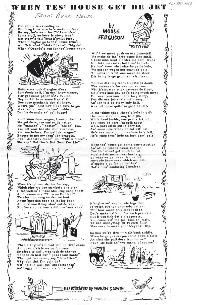 Poem with illustrations by Marsh Garvie - shows jet engines