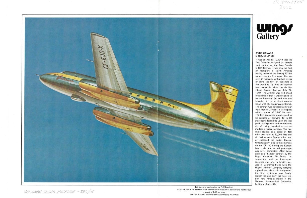 colour drawing of Jetliner (Robert Bradford) with brief summary