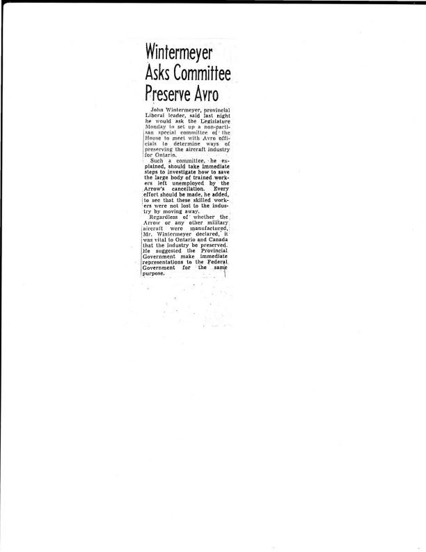 Provincial Liberal leader suggests a non partisan committee should approach Ottawa to salvage the aircraft industryGeneral Notes