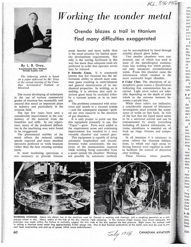 pgs. 60, 61 With image of L.B. Gray, Experimental Shop Manager Orenda Engines Ltd.Publication Details