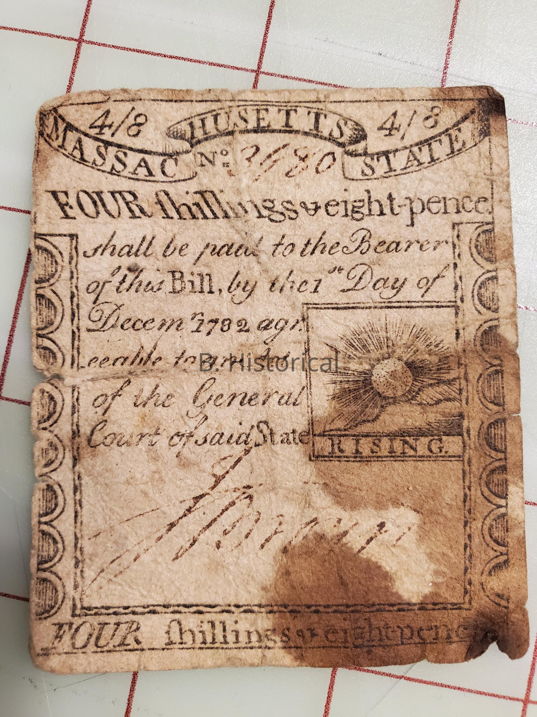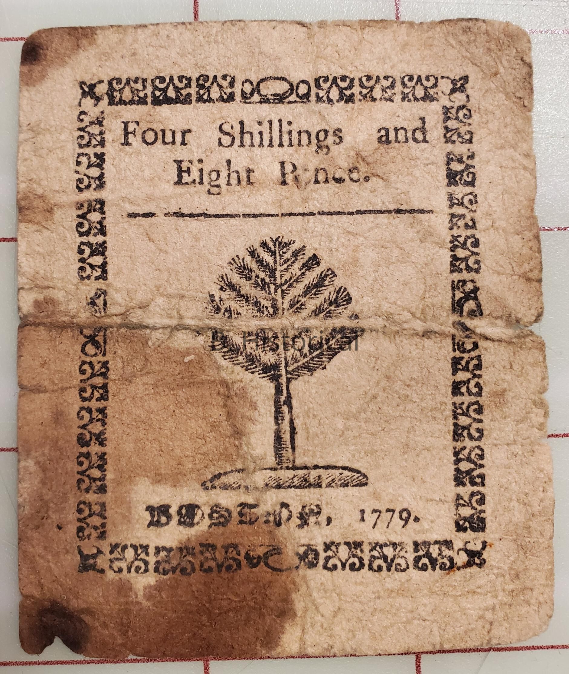 4 Shilling and 8 Pence printed in Boston, 1779.