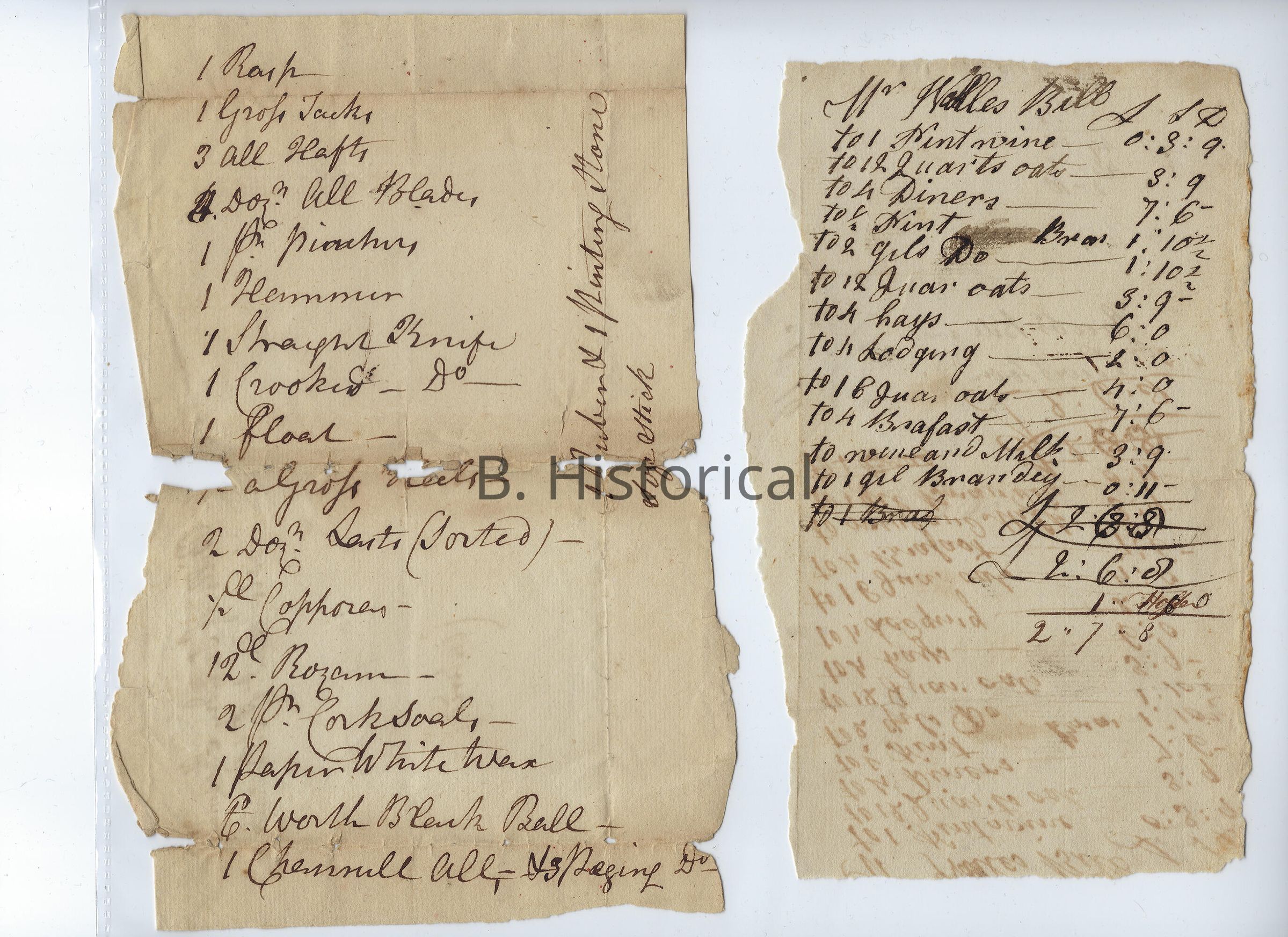 18th Century Receipts, Exact Date UnknownEntry/Object ID
