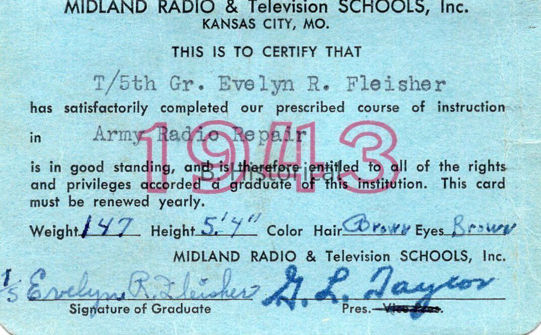 1944 and 1943 WAC Army Radio Repair CertificationDescription