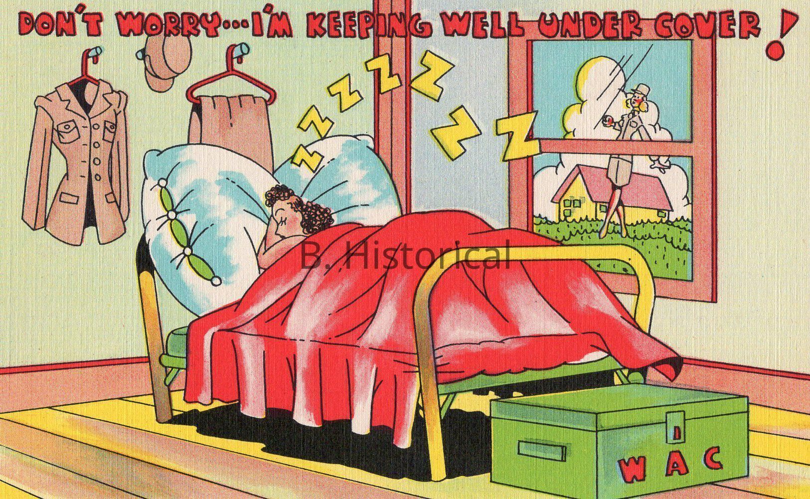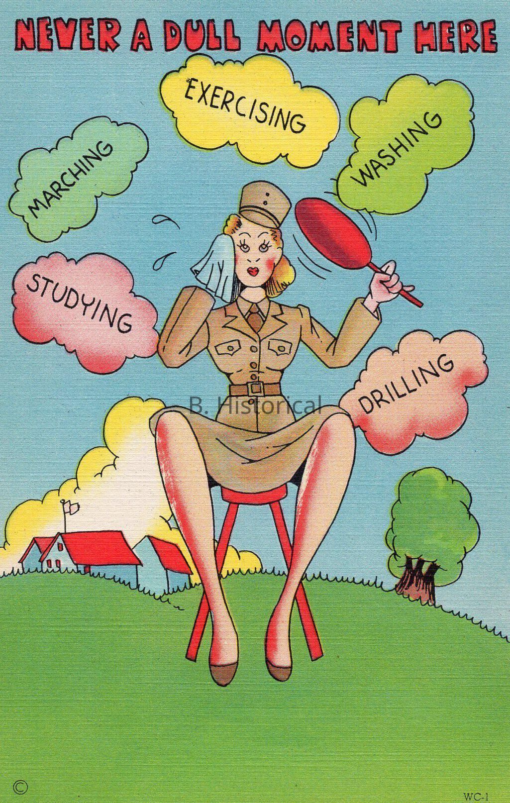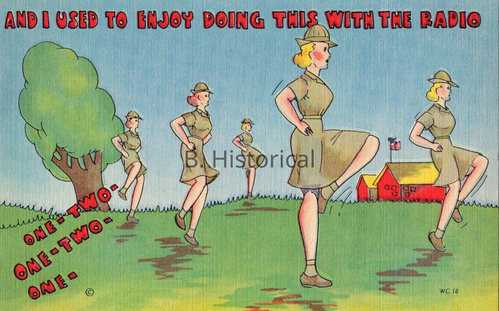 Printed on a textured linen paper, this post card displays women finally getting to serve their country officially in WWII. The women pictured are enlisted in the Women's Army Auxiliary Corps, or WAAC in an early summer khaki uniform.Created By