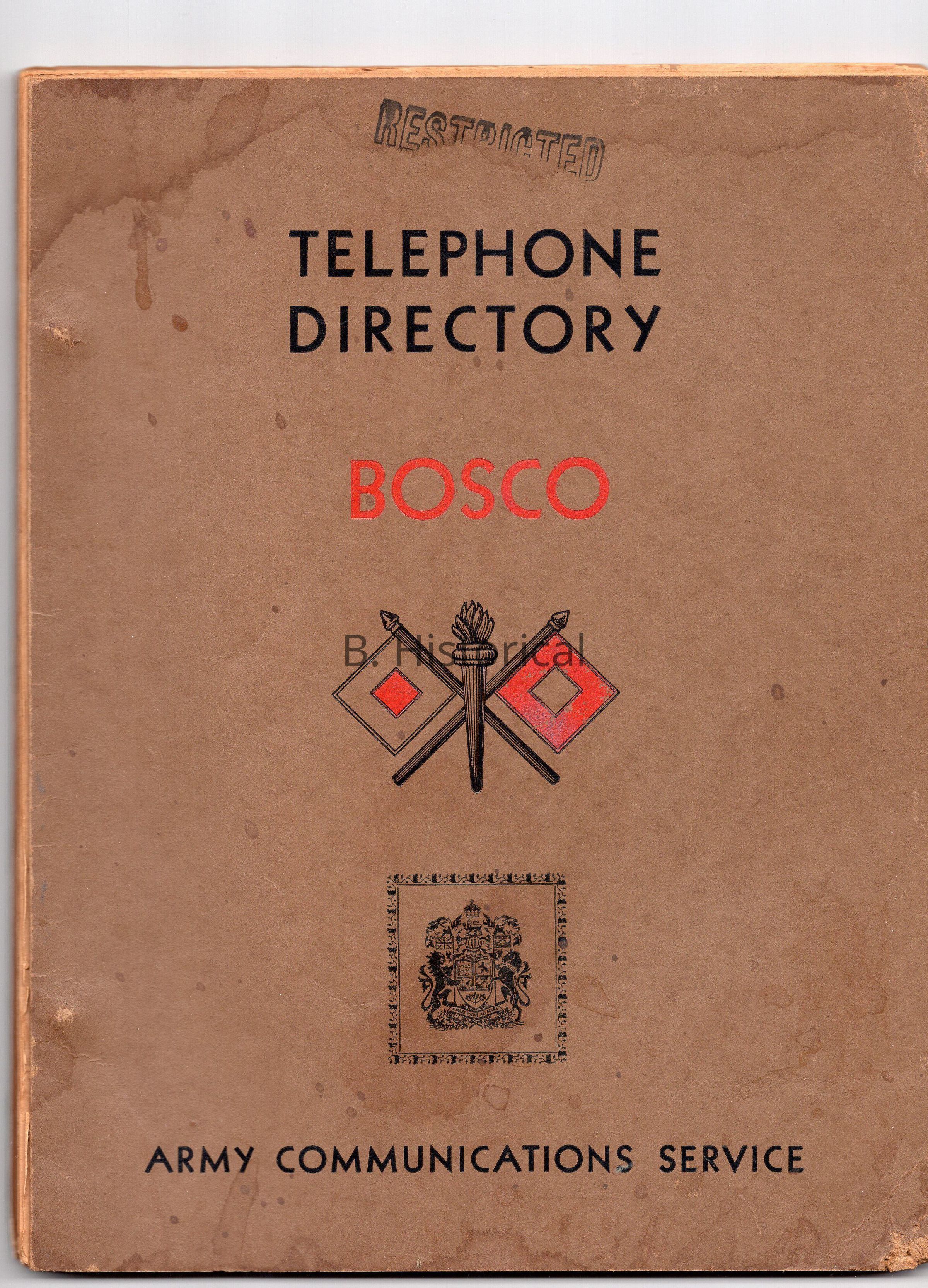 Booklet with telephone directory for the Boscoe conference between the allied forces.Created By