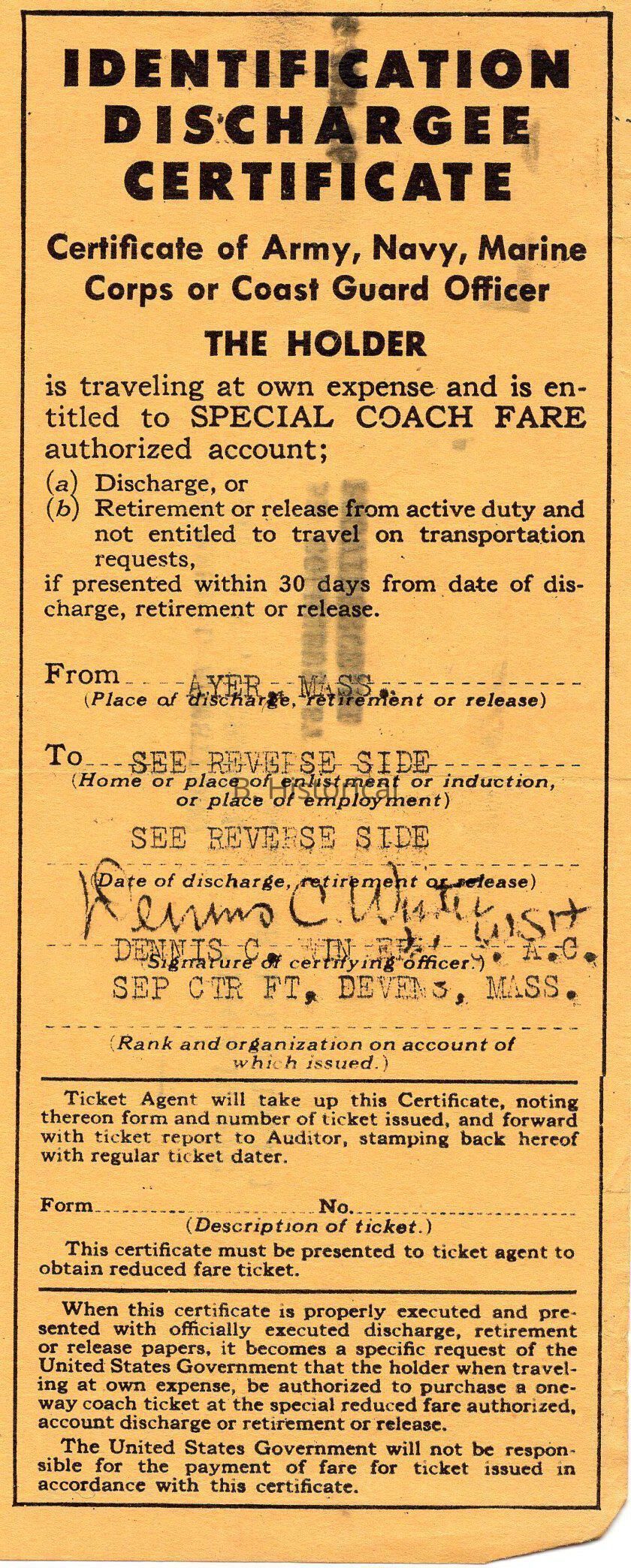This coupon entitled a discount to those who were recently discharged to travel home. They were traveling at their own expense otherwise.Created By