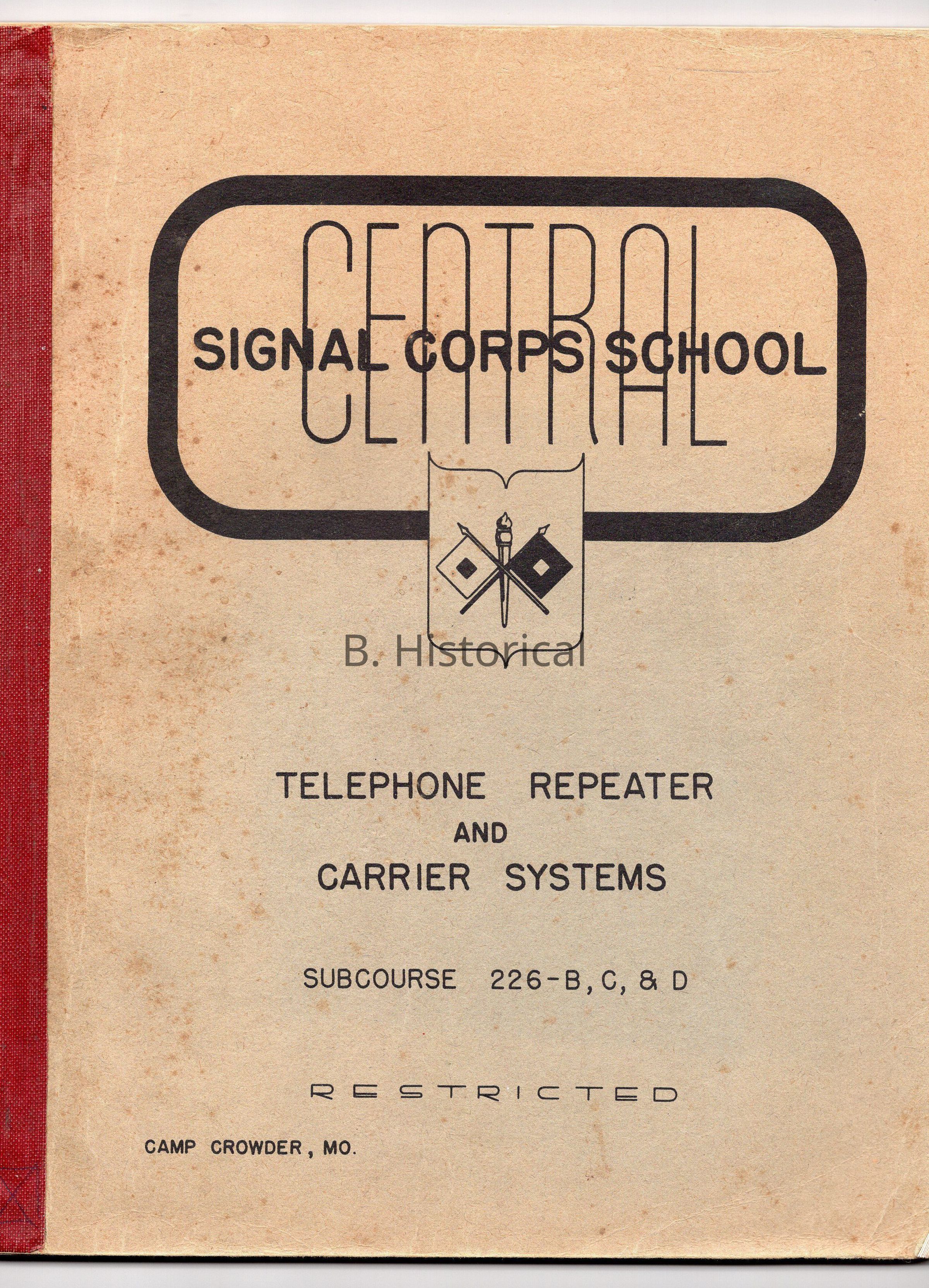 Manual from subcourse 226-B, C, & D from Camp Crowder, Missouri, Central Signal Corps School on Telephone Repeater and carrier Systems.Created By