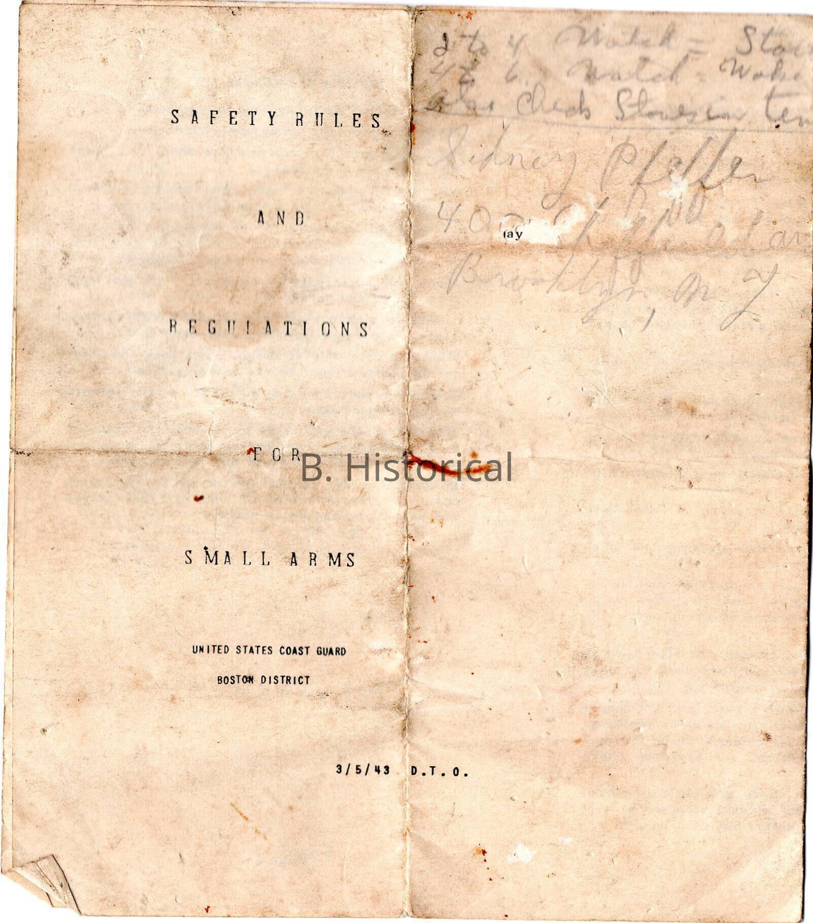 Safety Rules and Regulations for Small Arms, Coast Guard WWIIEntry/Object ID