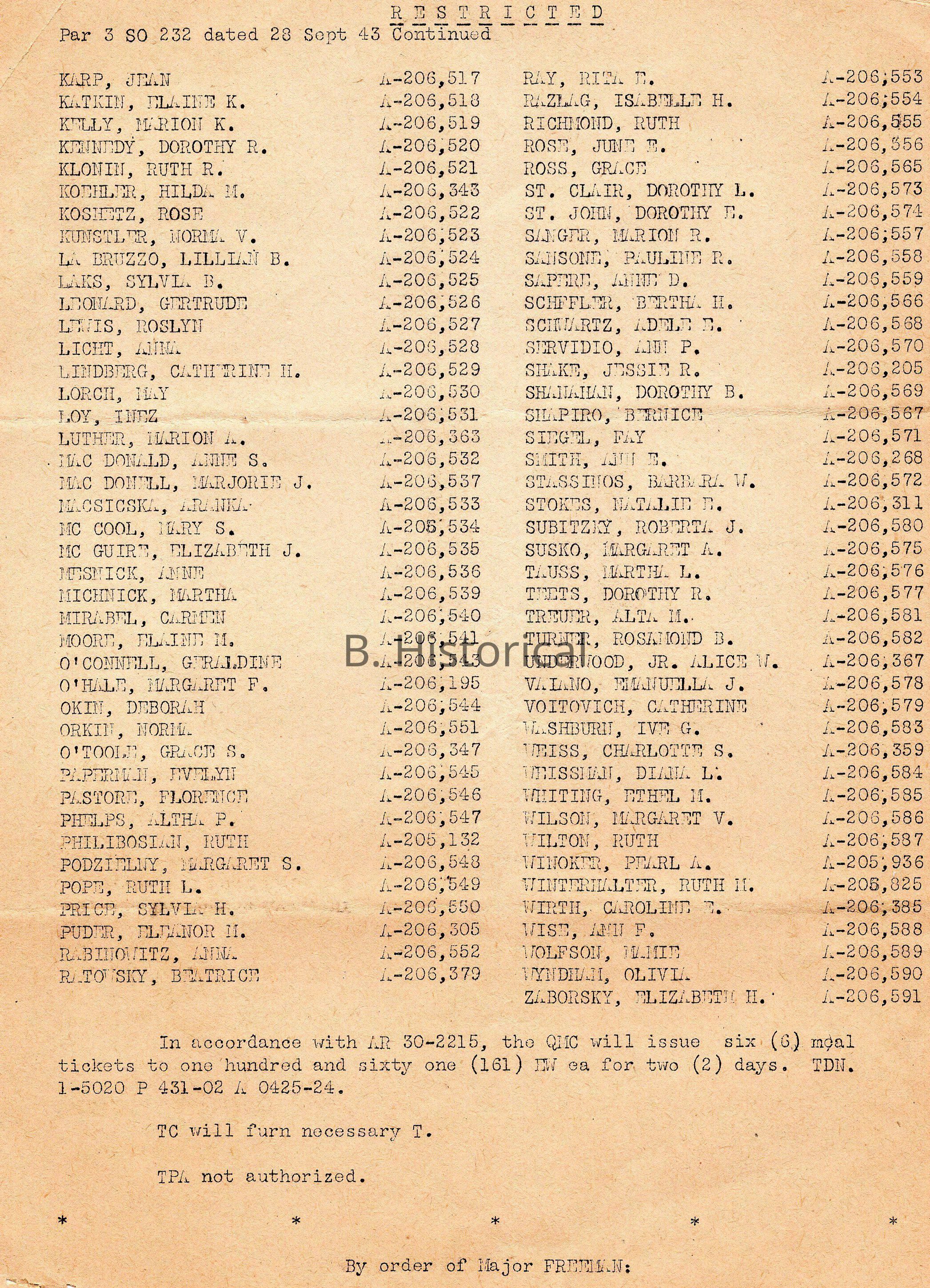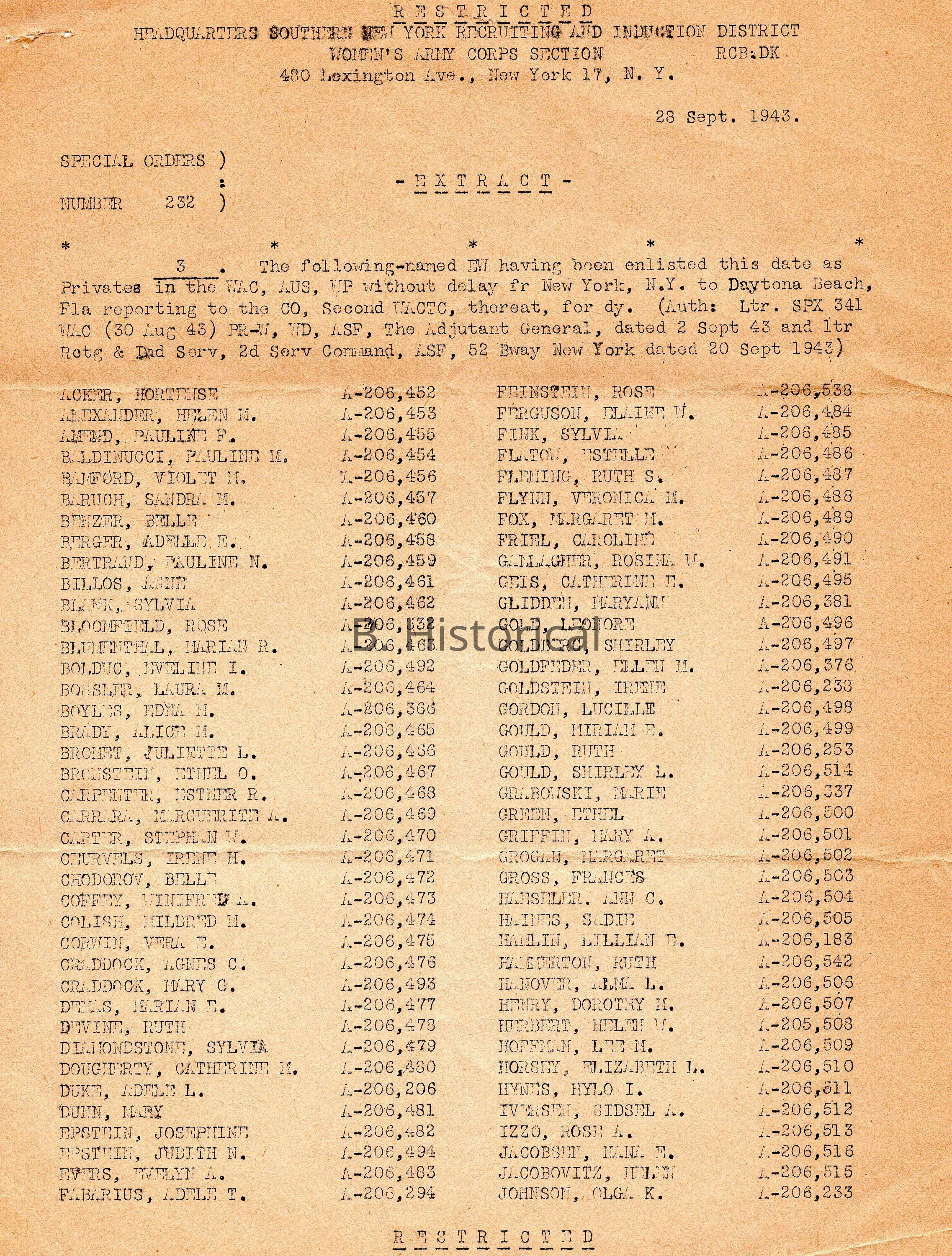 September 1943 WAC Recruitment ListEntry/Object ID