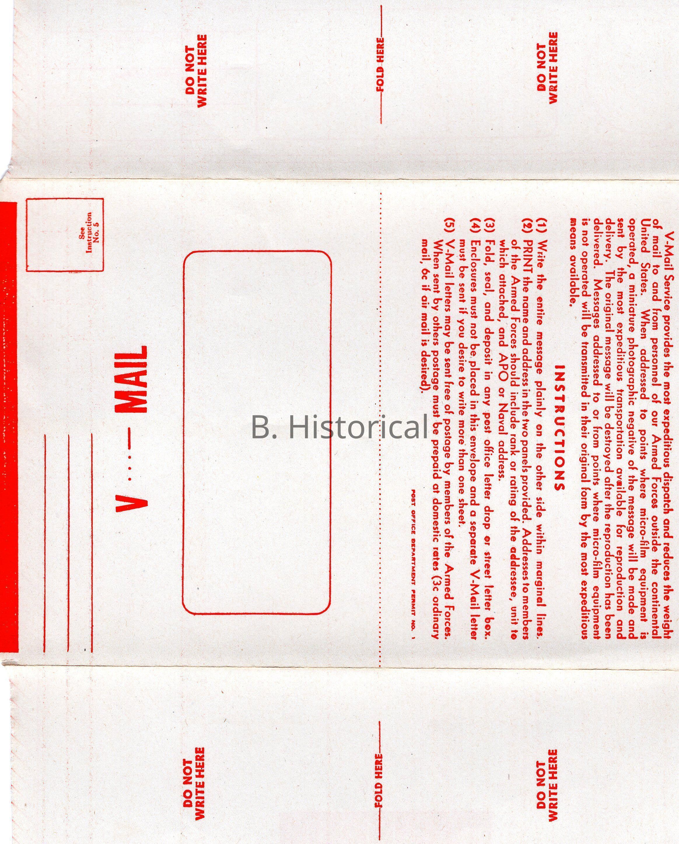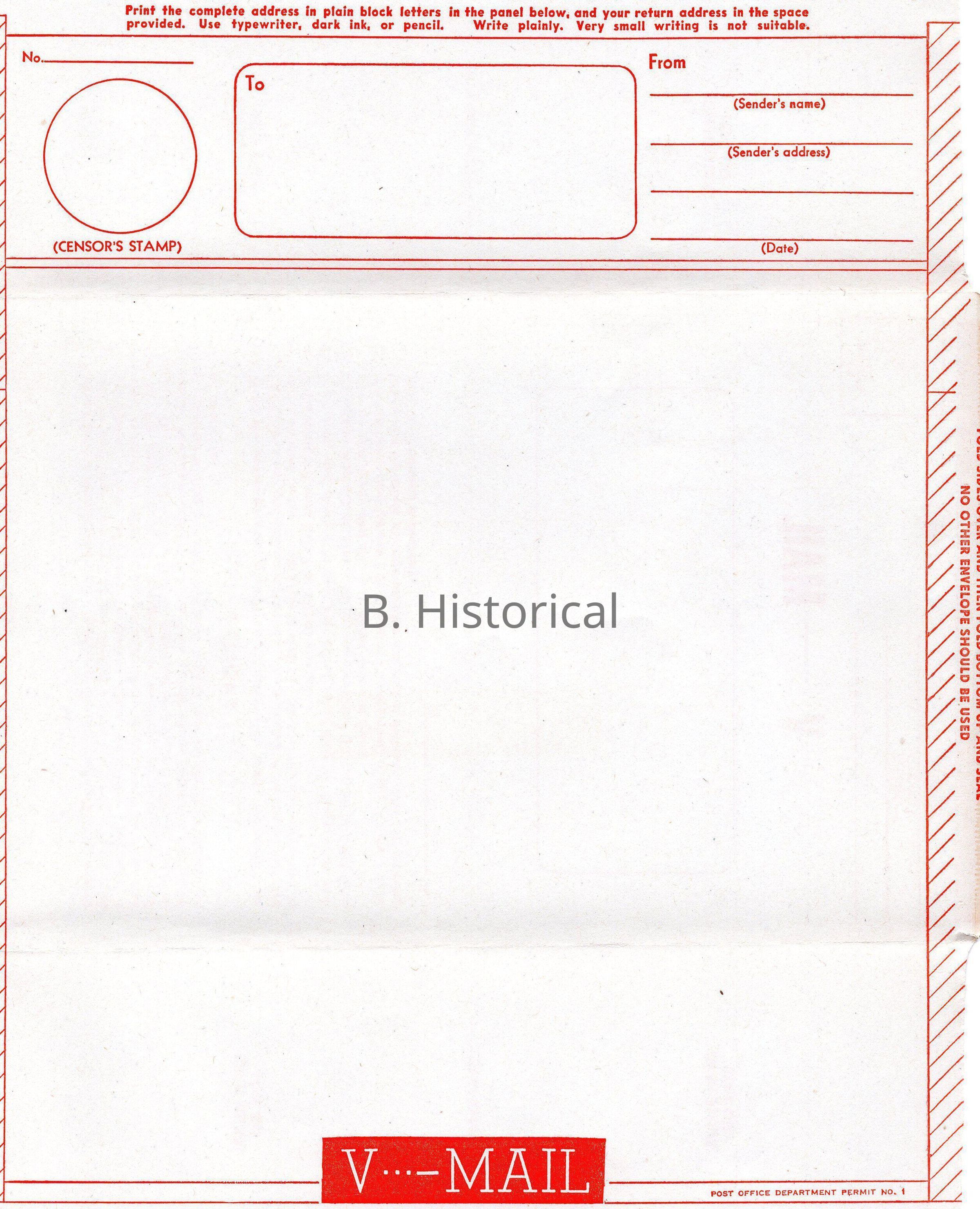 An unused V-Mail from WWII. The V, stands for Victory. These were used for the those on the homefront to send letters to those serving.Created By