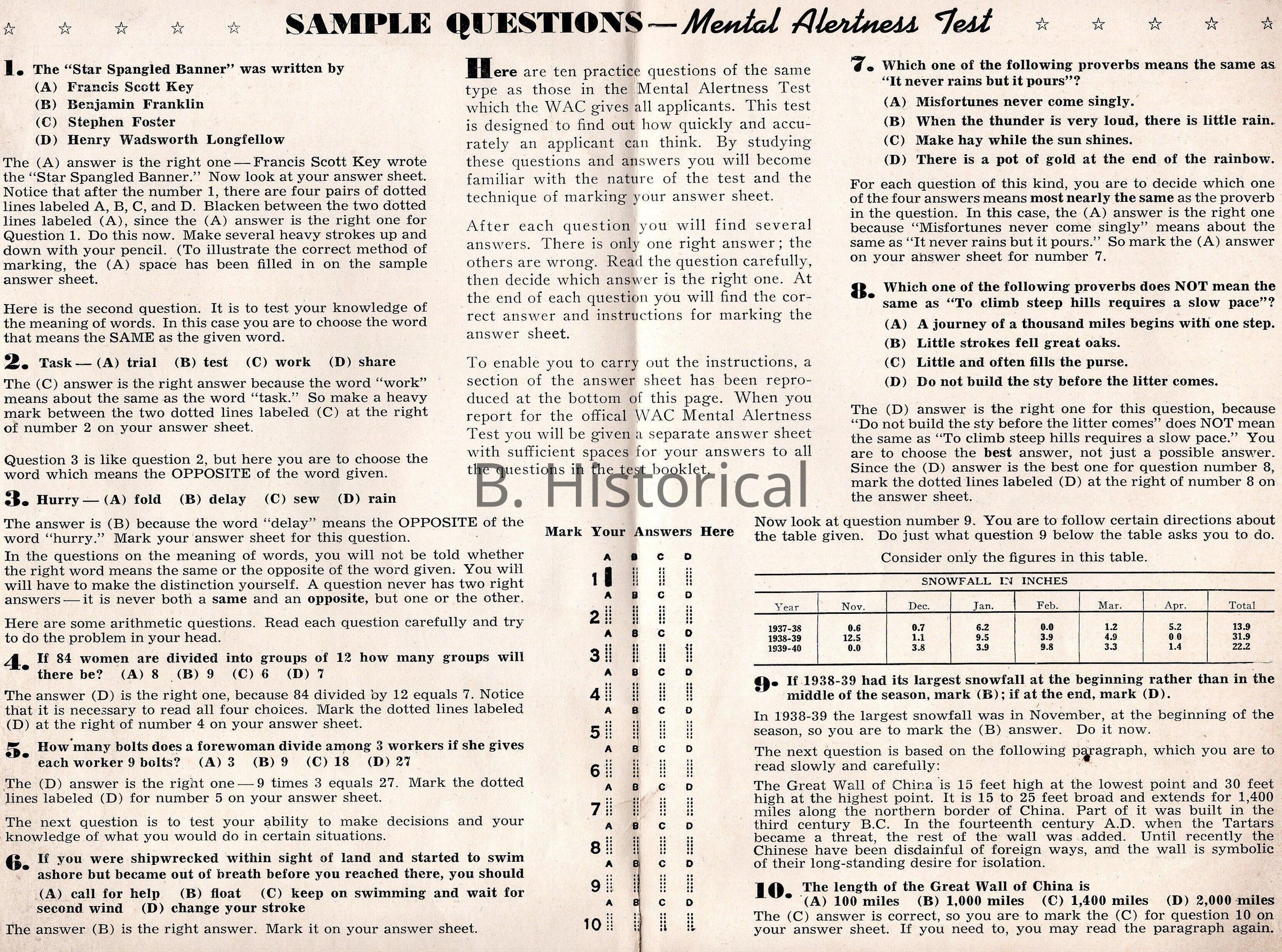 WAC Mental Alertness Test Preview, WWIIEntry/Object ID