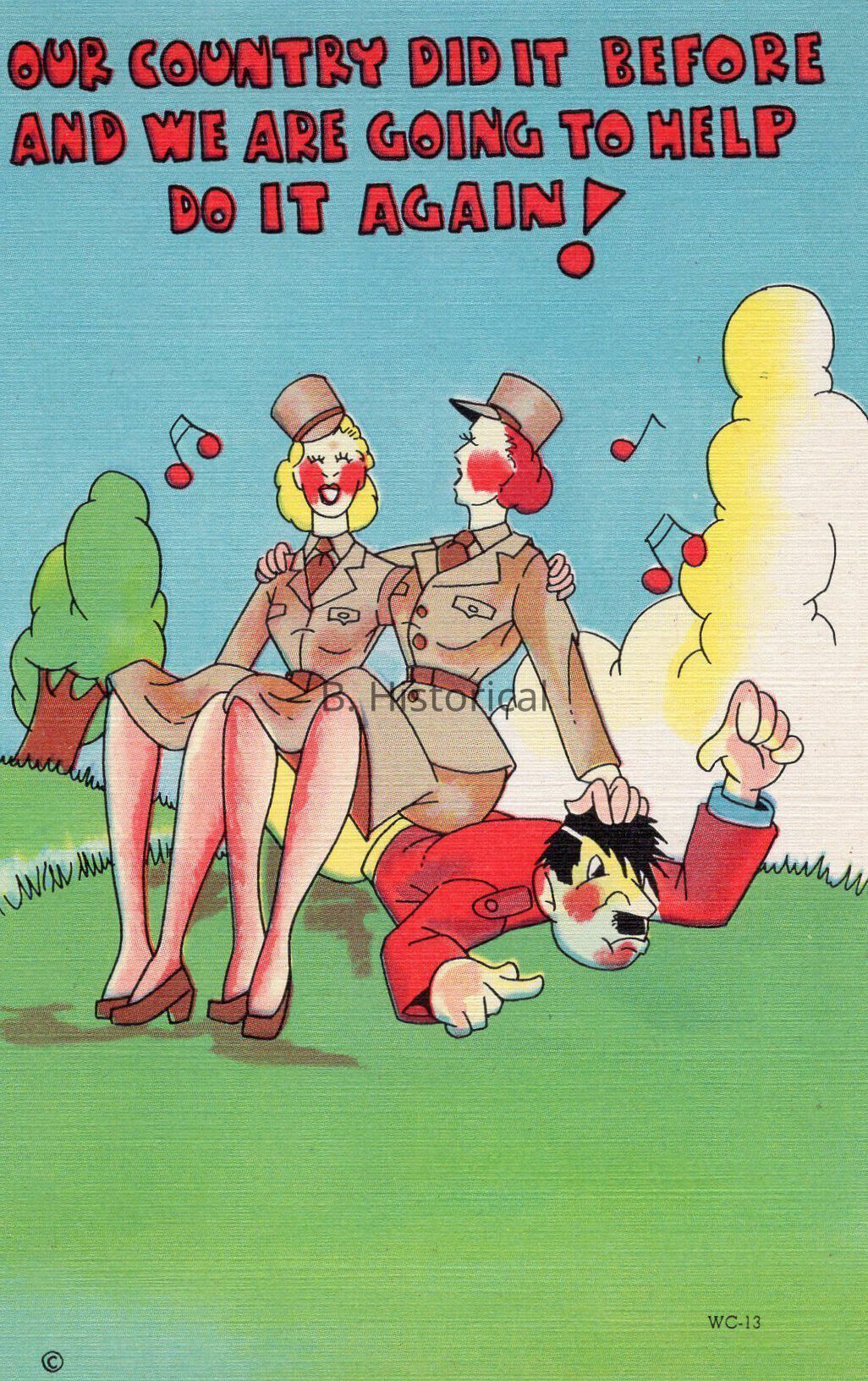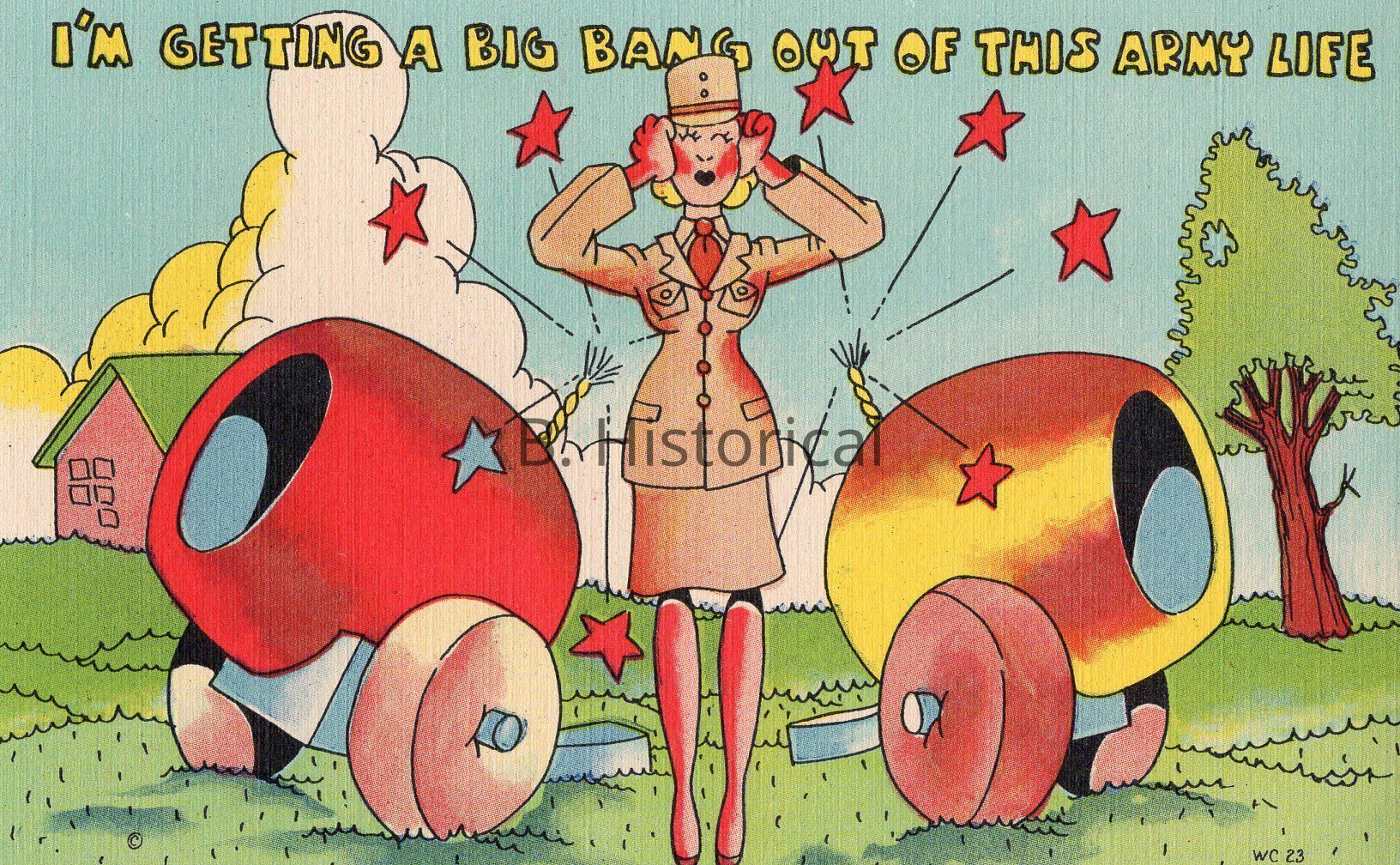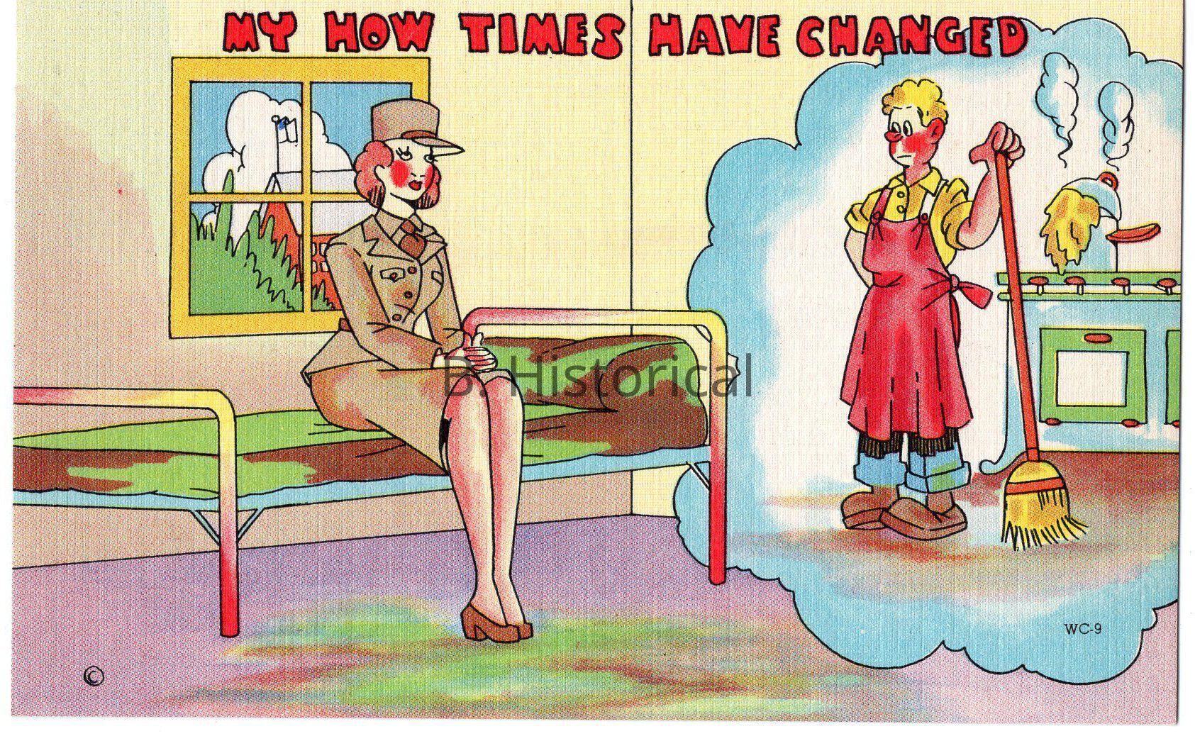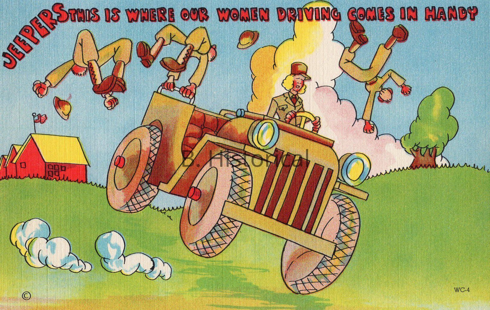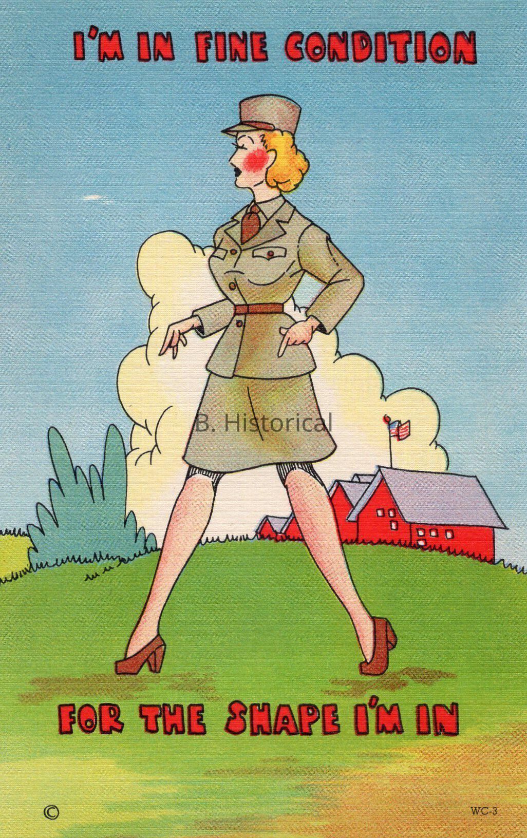 Printed on a textured linen paper, this post card displays women finally getting to serve their country officially in WWII. The women pictured are enlisted in the Women's Army Auxiliary Corps, or WAAC in an early summer khaki uniform.Created By
