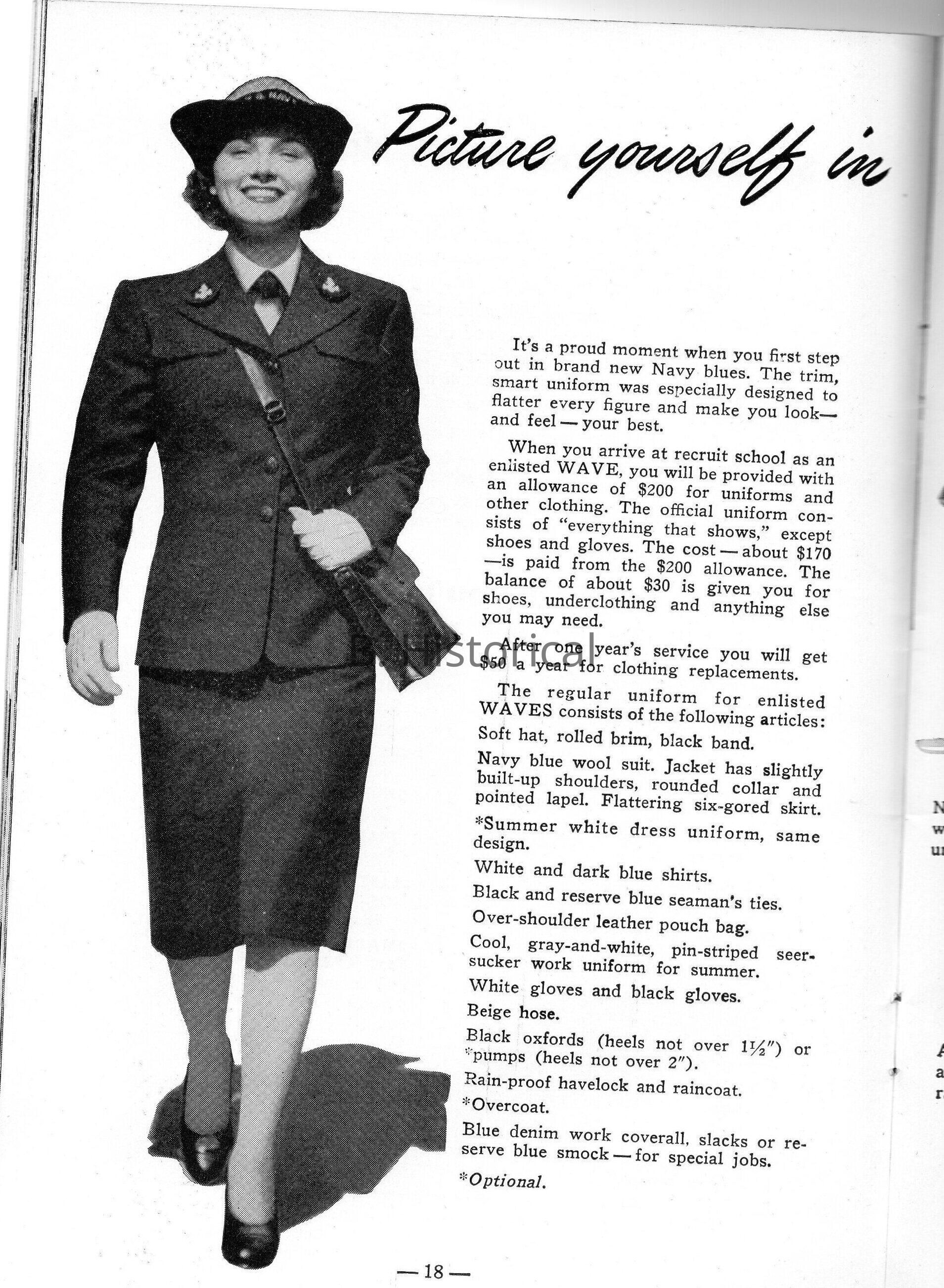 This brochure was handed out to women interested in joining the WAVES, the Women Accepted for Volunteer Emergency Service. This was the Womem's Navy. The brochure includes uniforms, pay, career options and more.Created By