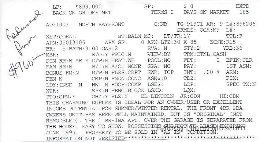 Part of an advertisement with photo for home for sale at 1003 N Bayfront.Lexicon