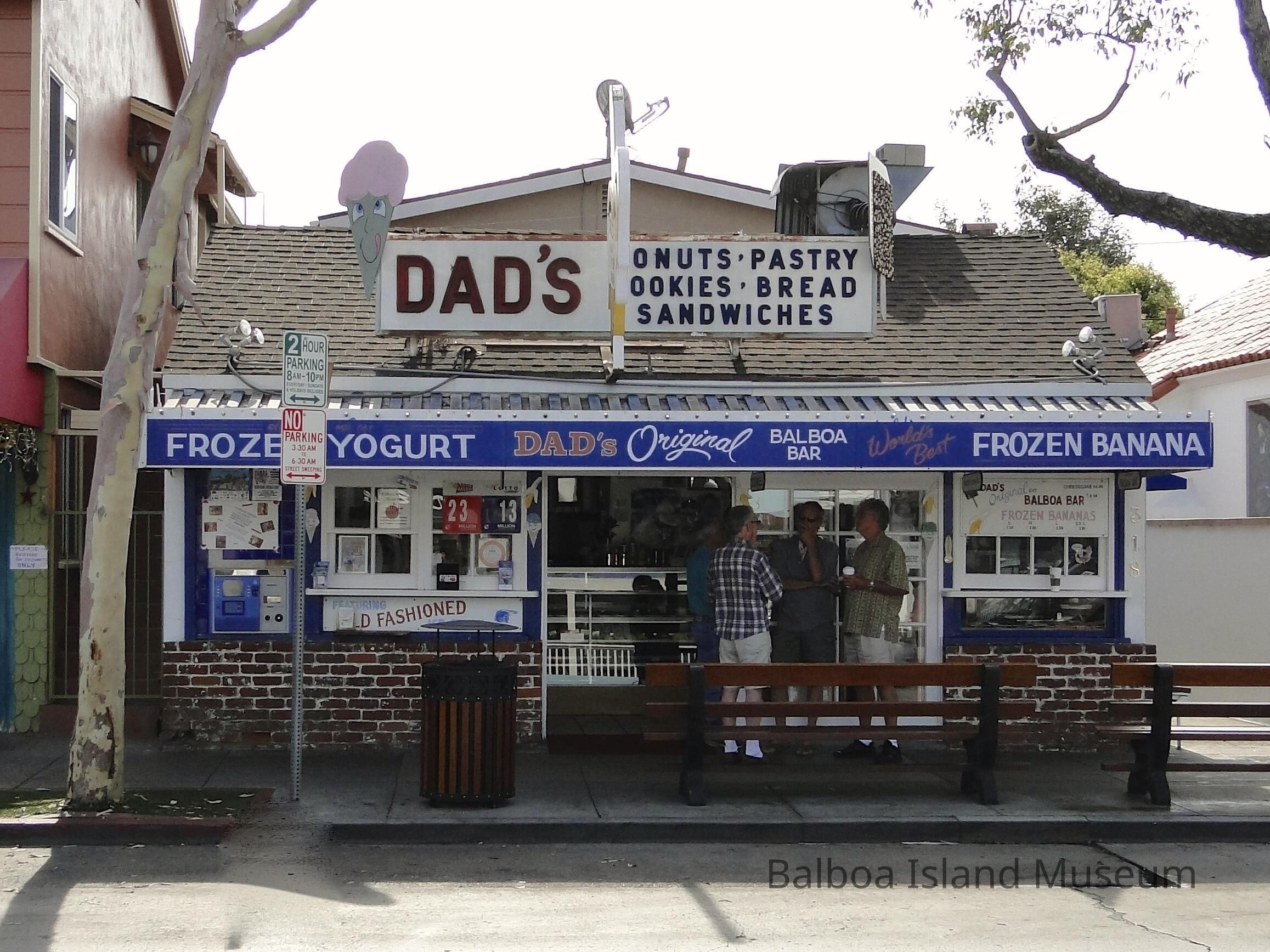 Color photo in front of the building at 318 Marine Avenue, the location of Dad's Donuts.Photograph Details