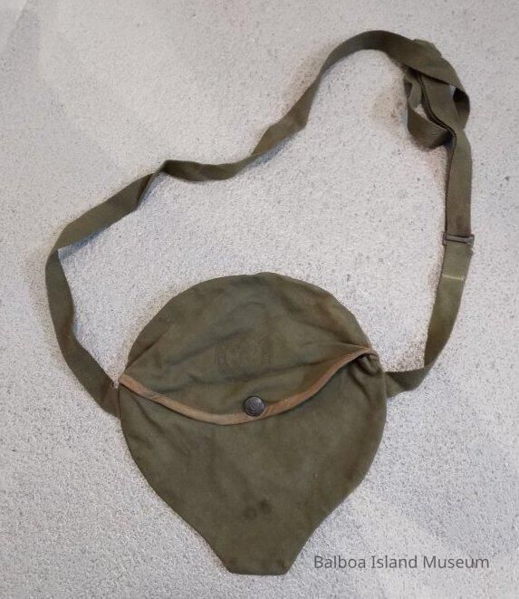 A bag for a mess kit from the boy scouts of America. jIt's ag reen bag with a small snap on the front bearing the Boy scouts logo and a circumar pouch with a small spout-shaped bit at the bottom to account for the snap on the mess kit.Lexicon