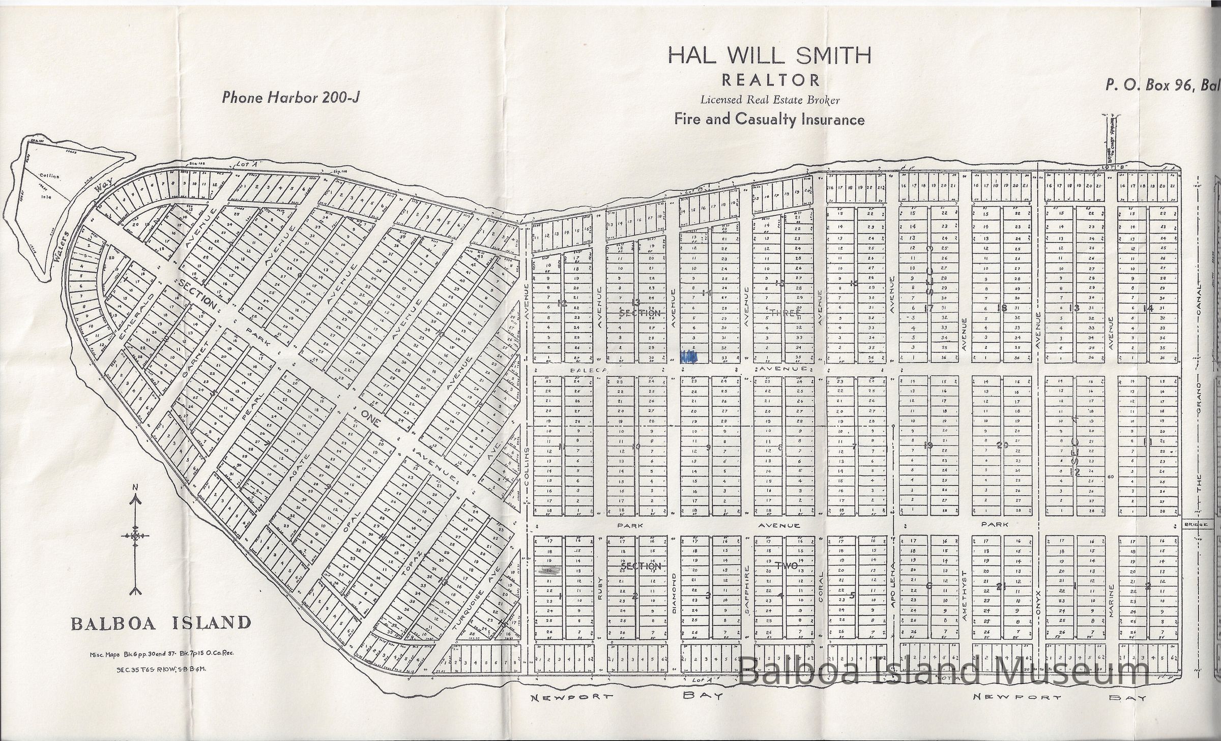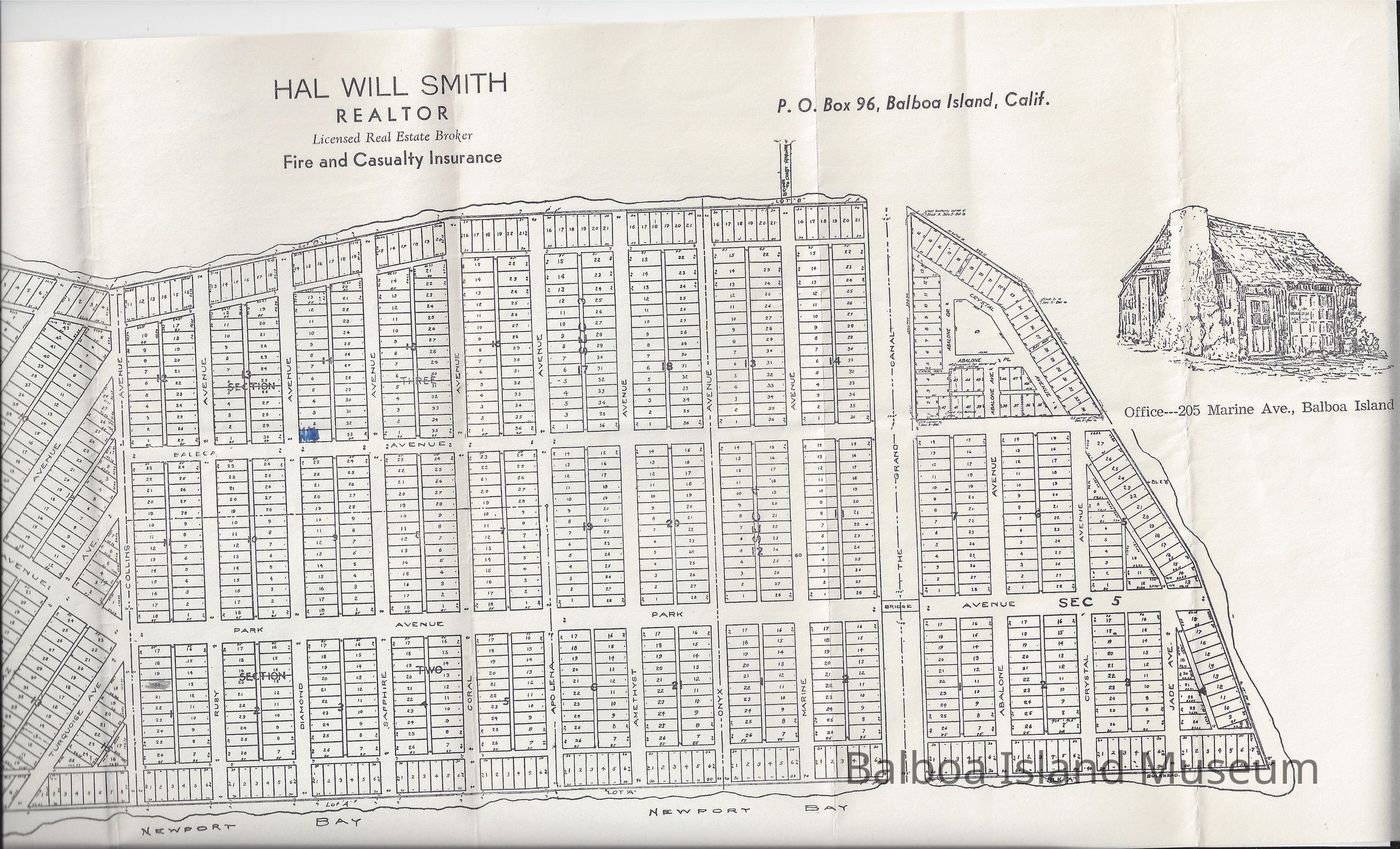 Map of Balboa Island. Name of Hal Will Smith Realtor on title.