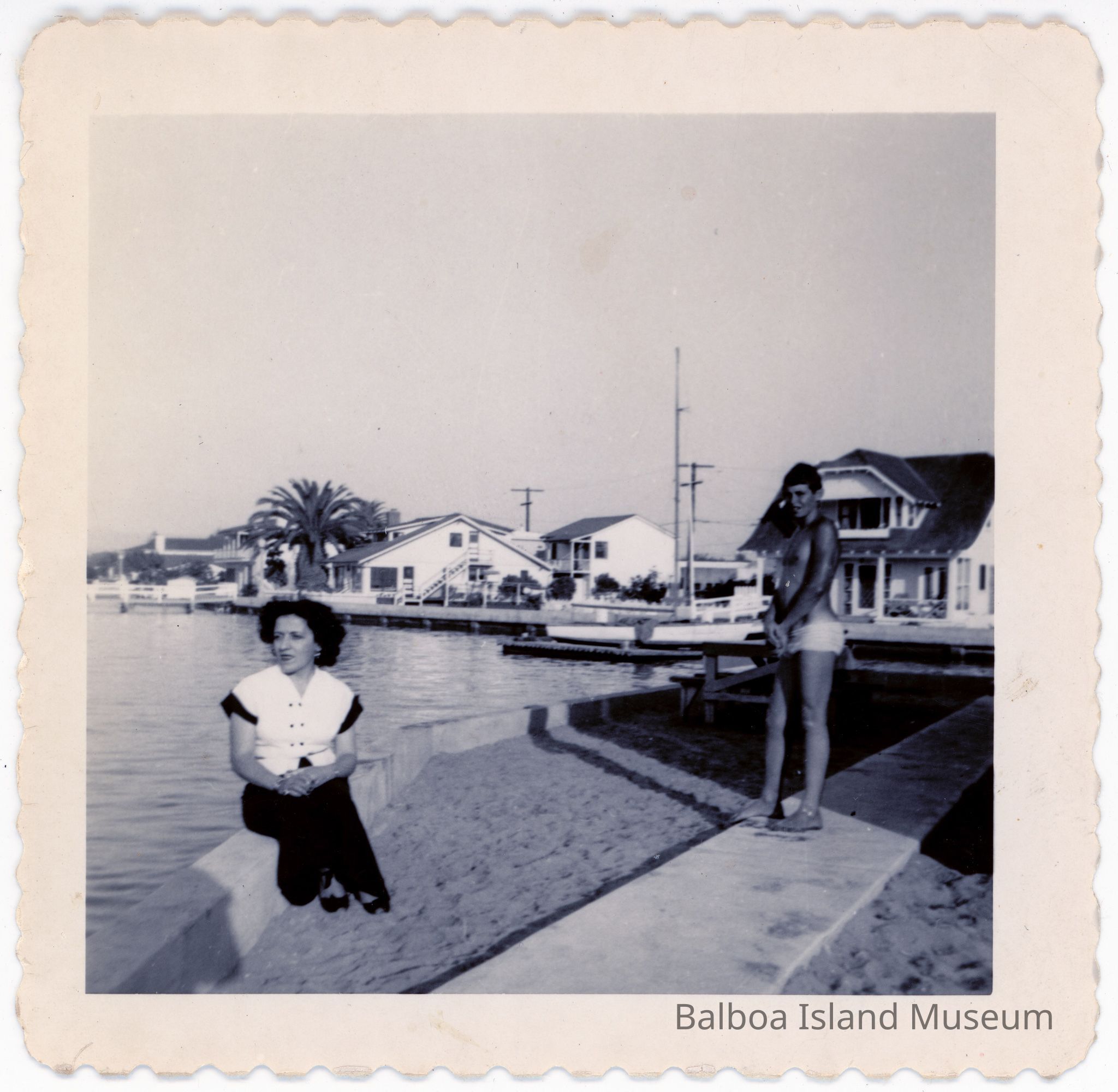 Two people on the beach on the eastern side of Collins Island with North Bayfront homes in the backgroundPhotograph Details
