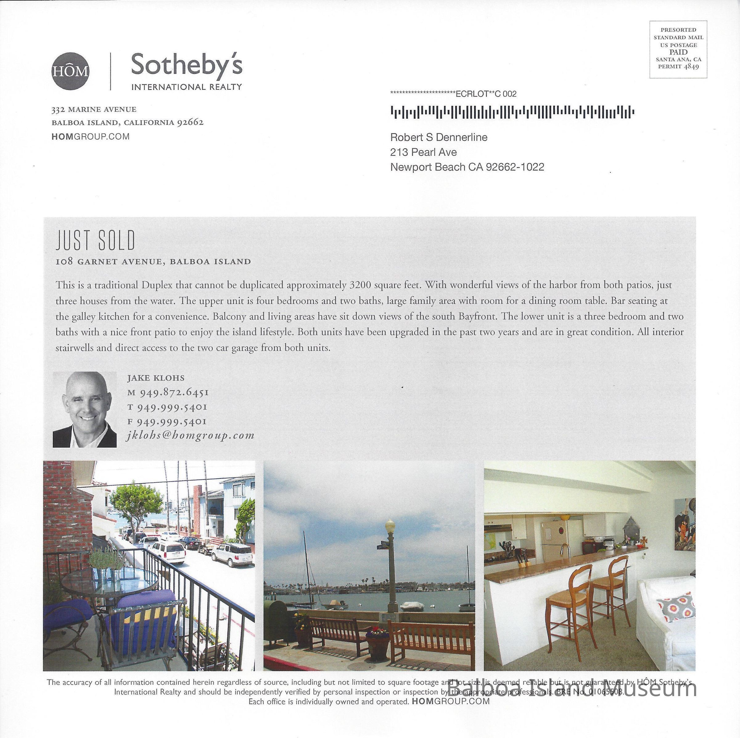 Post card advertising home just sold at 108 Garnet Avenue.Lexicon