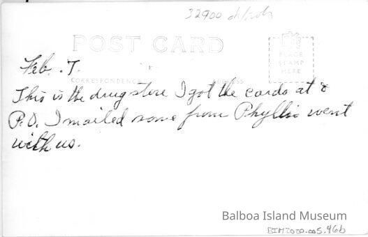 Feb. 7: "This is the drug store I got the cards at & P. O. I mailed some from. Phyllis went with us"Create Date