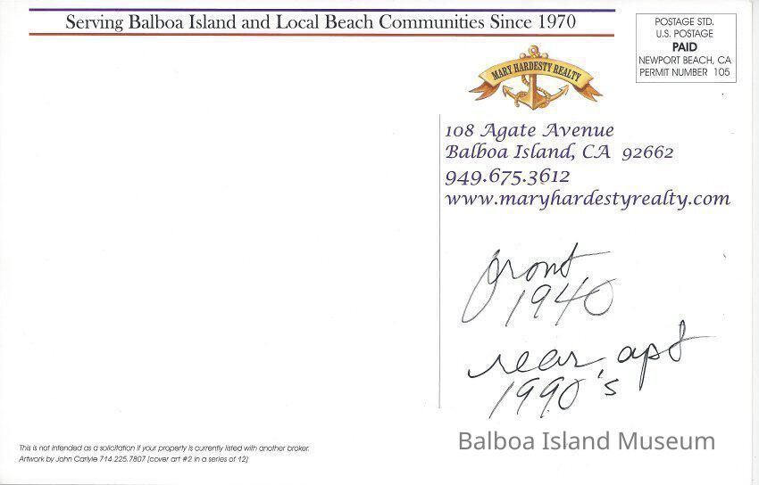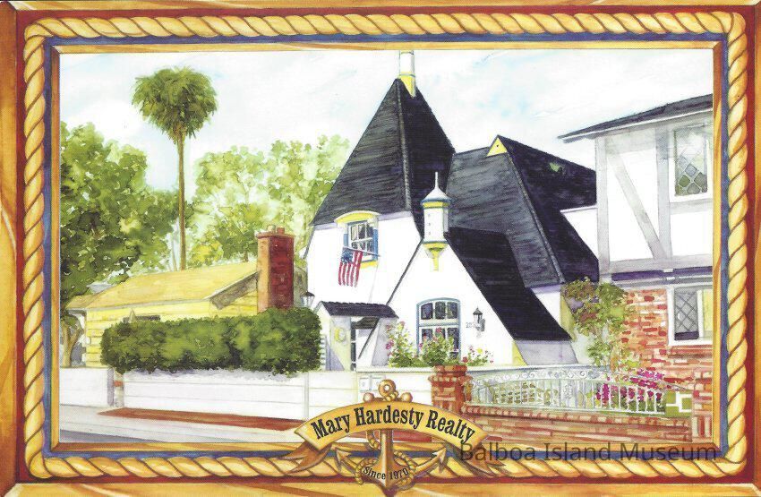 Post card with Mary Hardesty Realty showing painting of home at 203 Emerald Ave.Subject Person/Organization