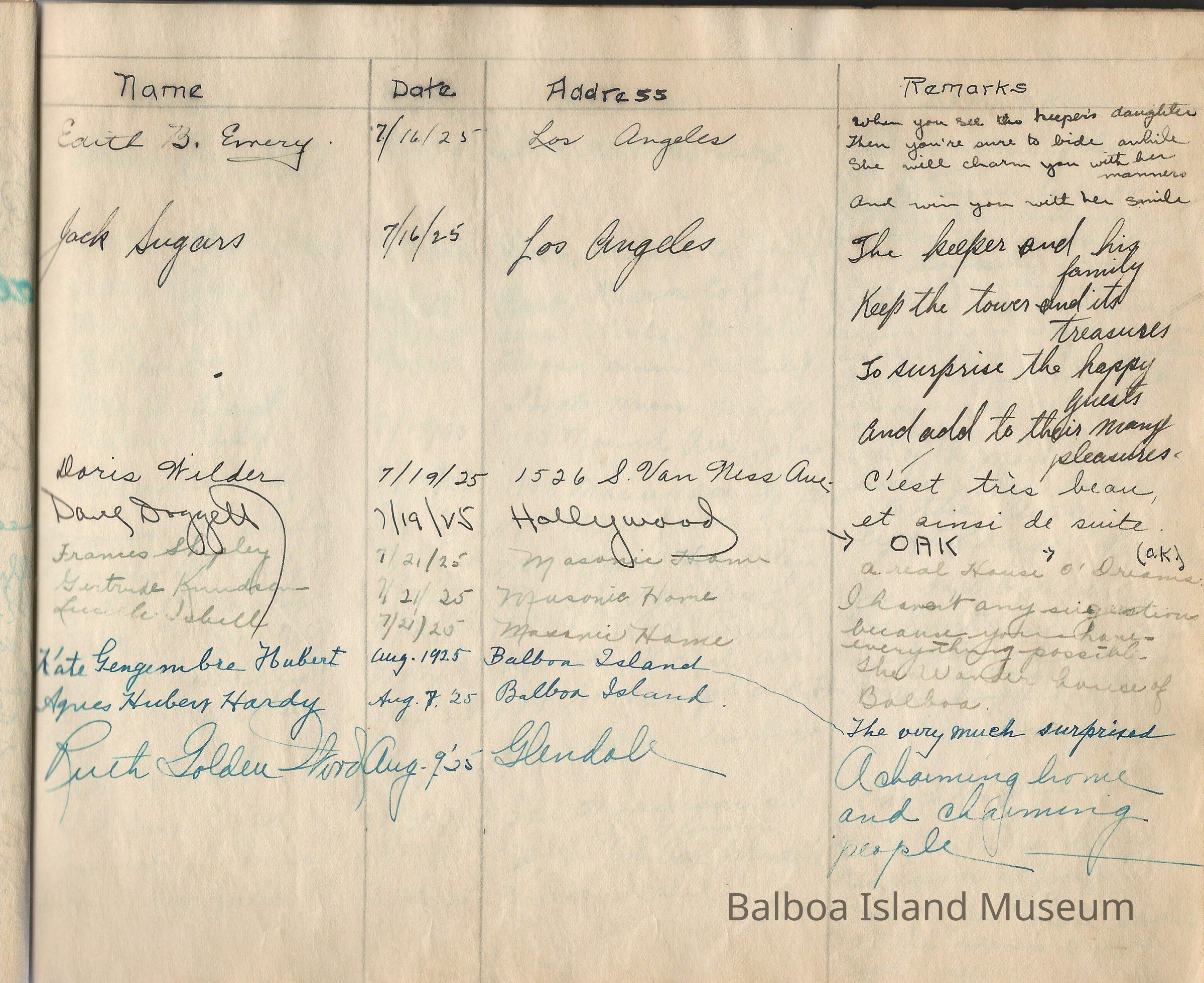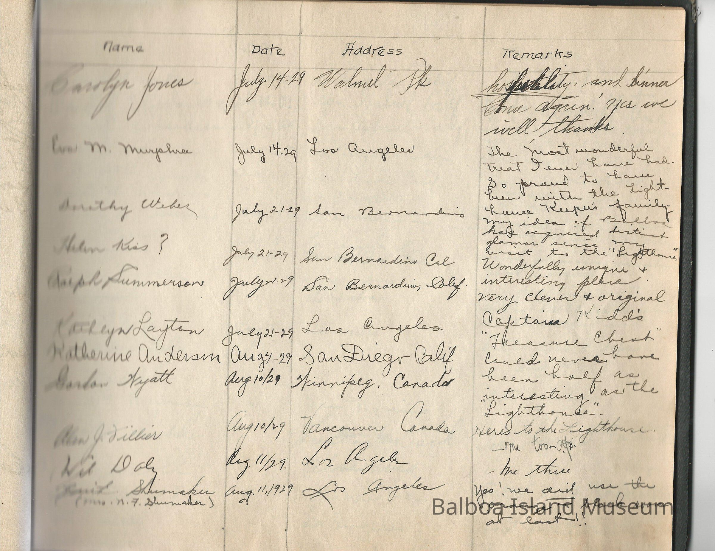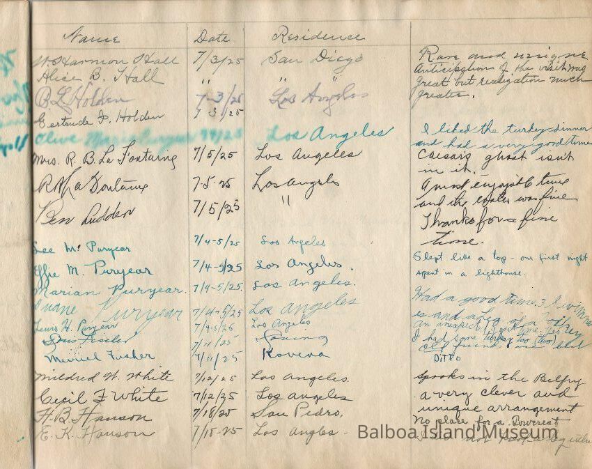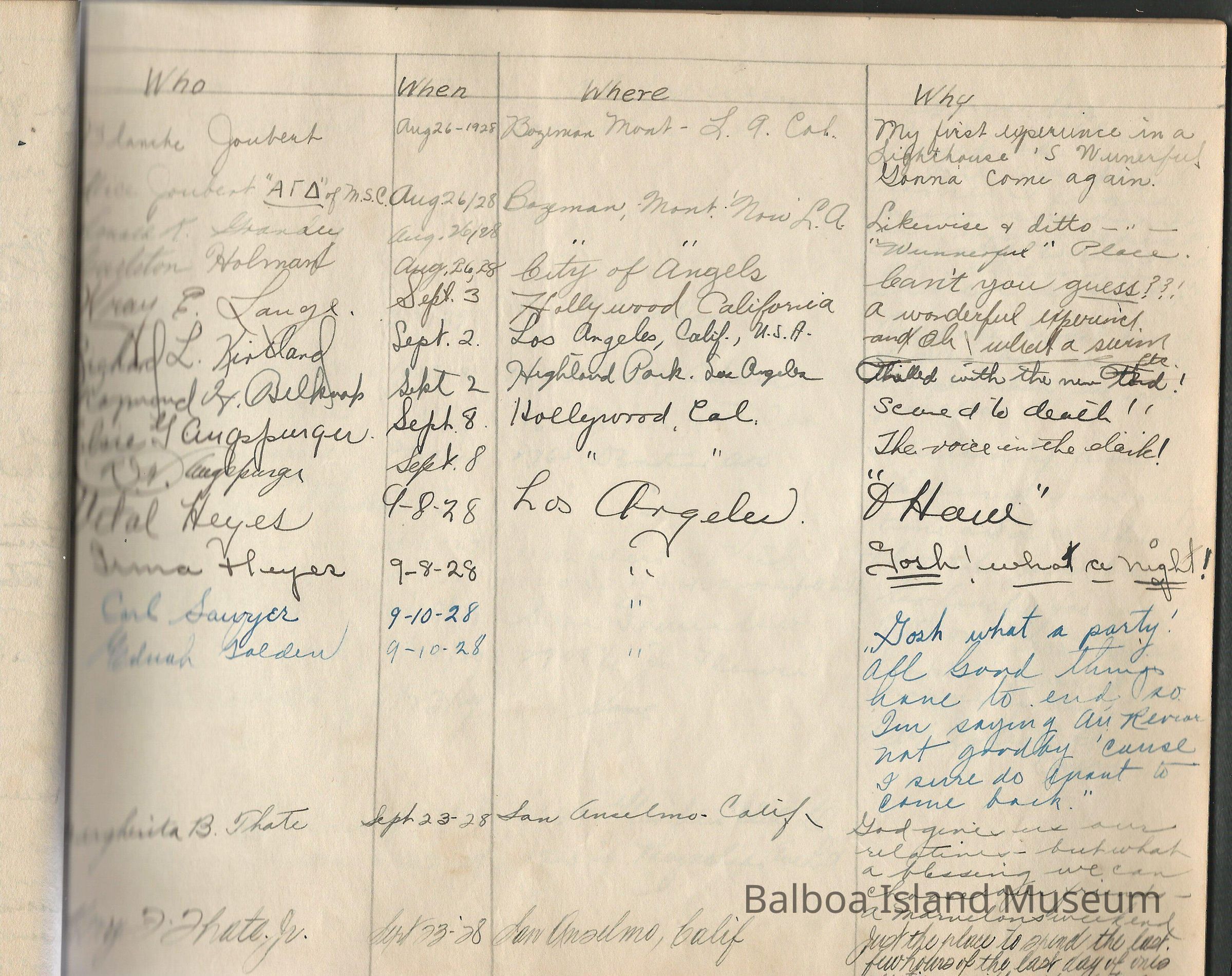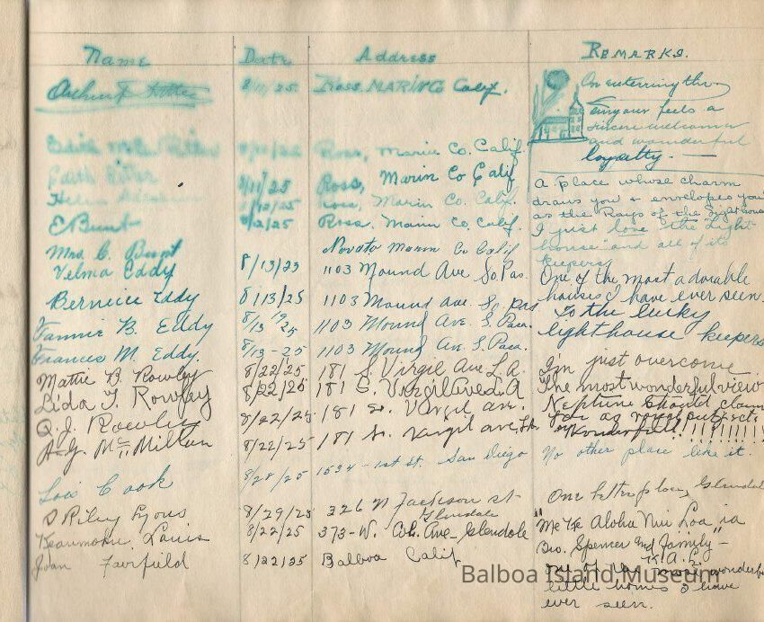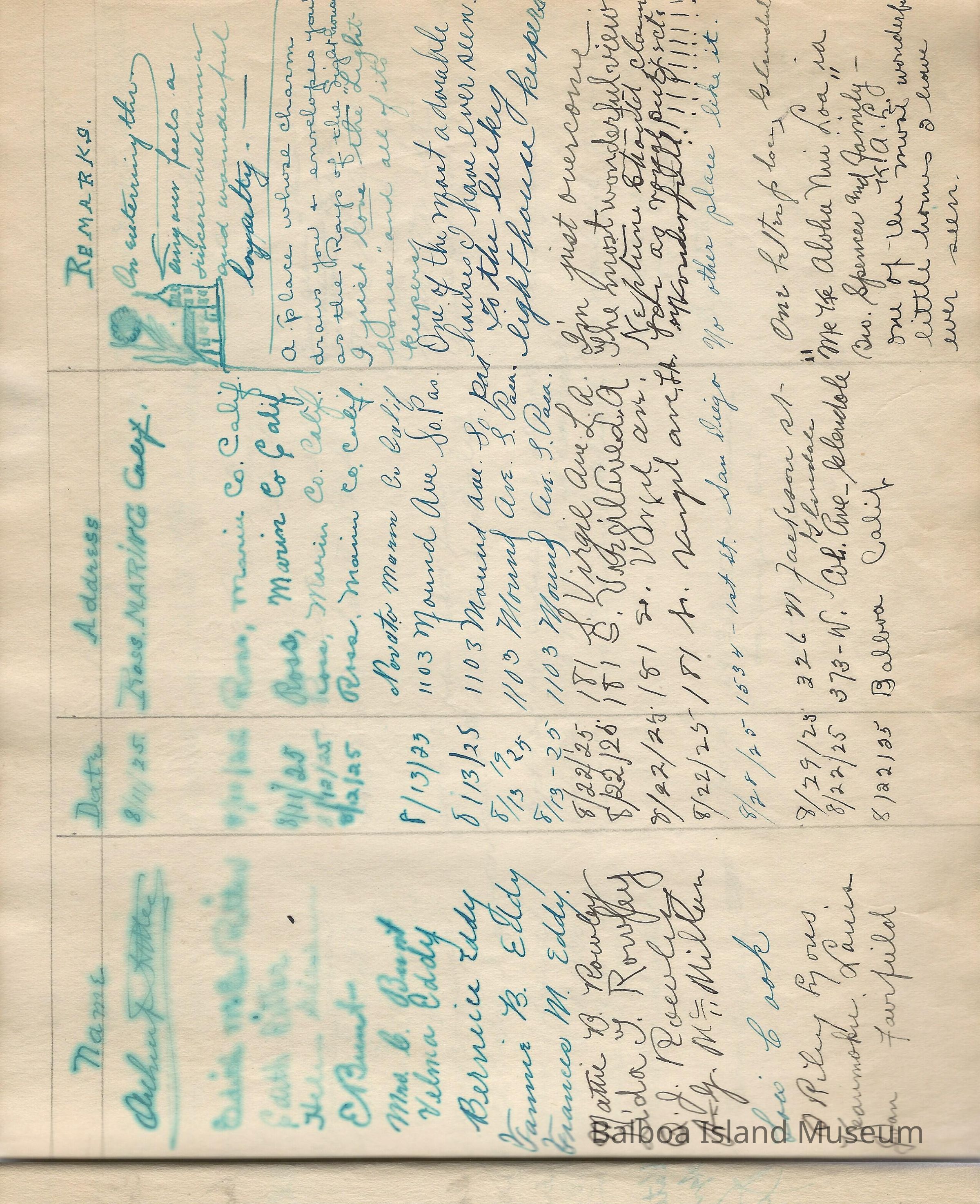 Log book showing visitor comments to the Lighthouse at 901 North Bay Front - 1925 to 1932