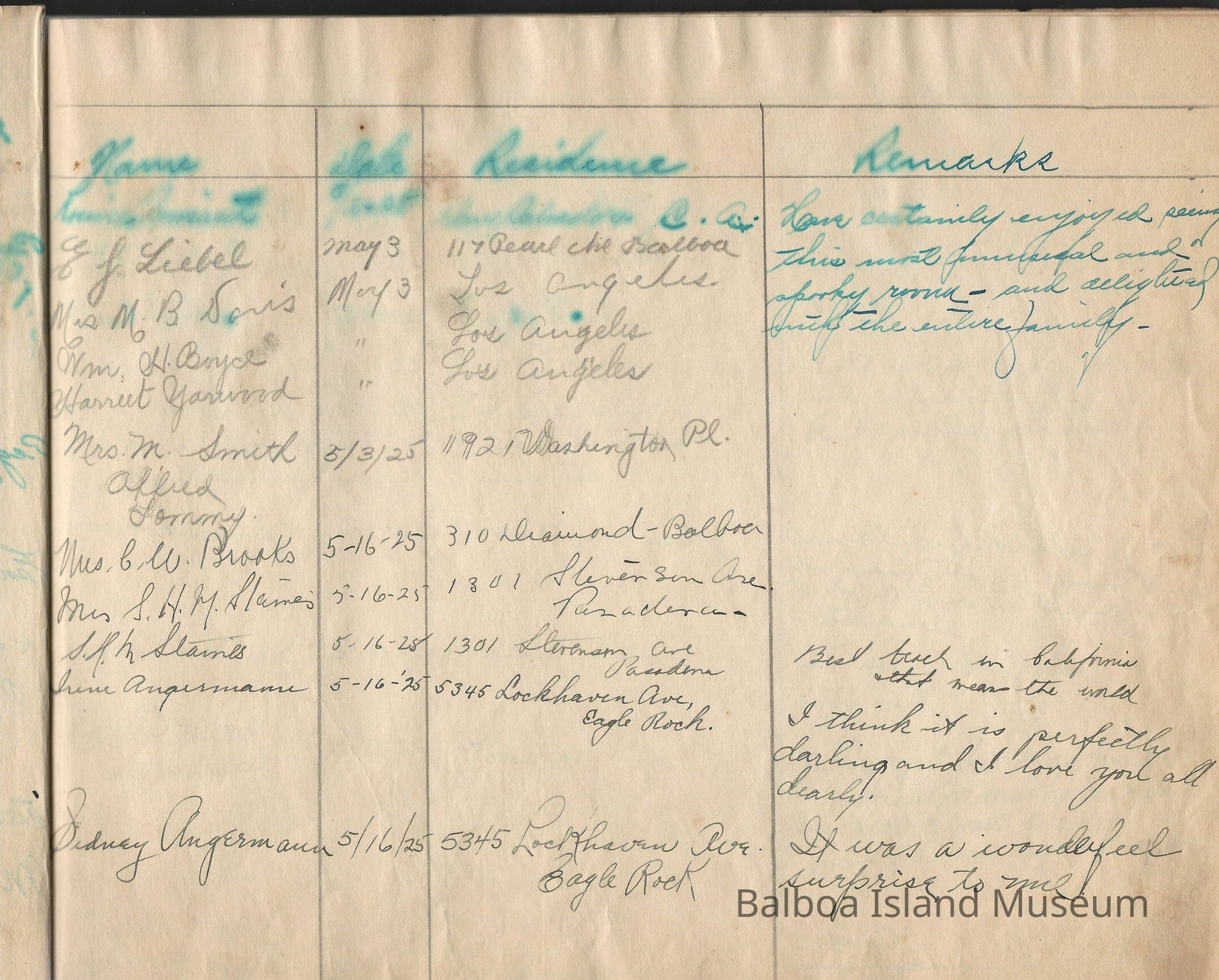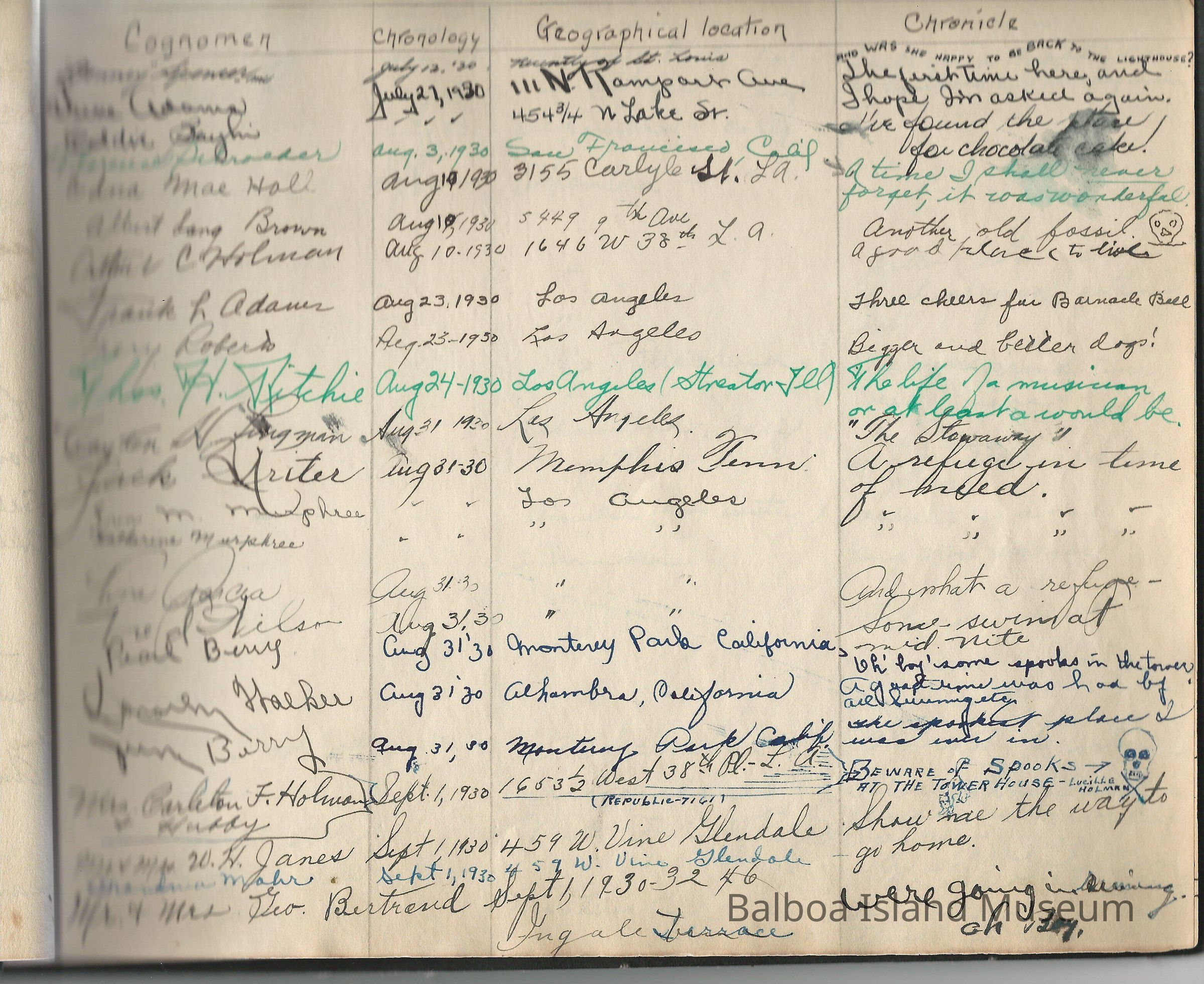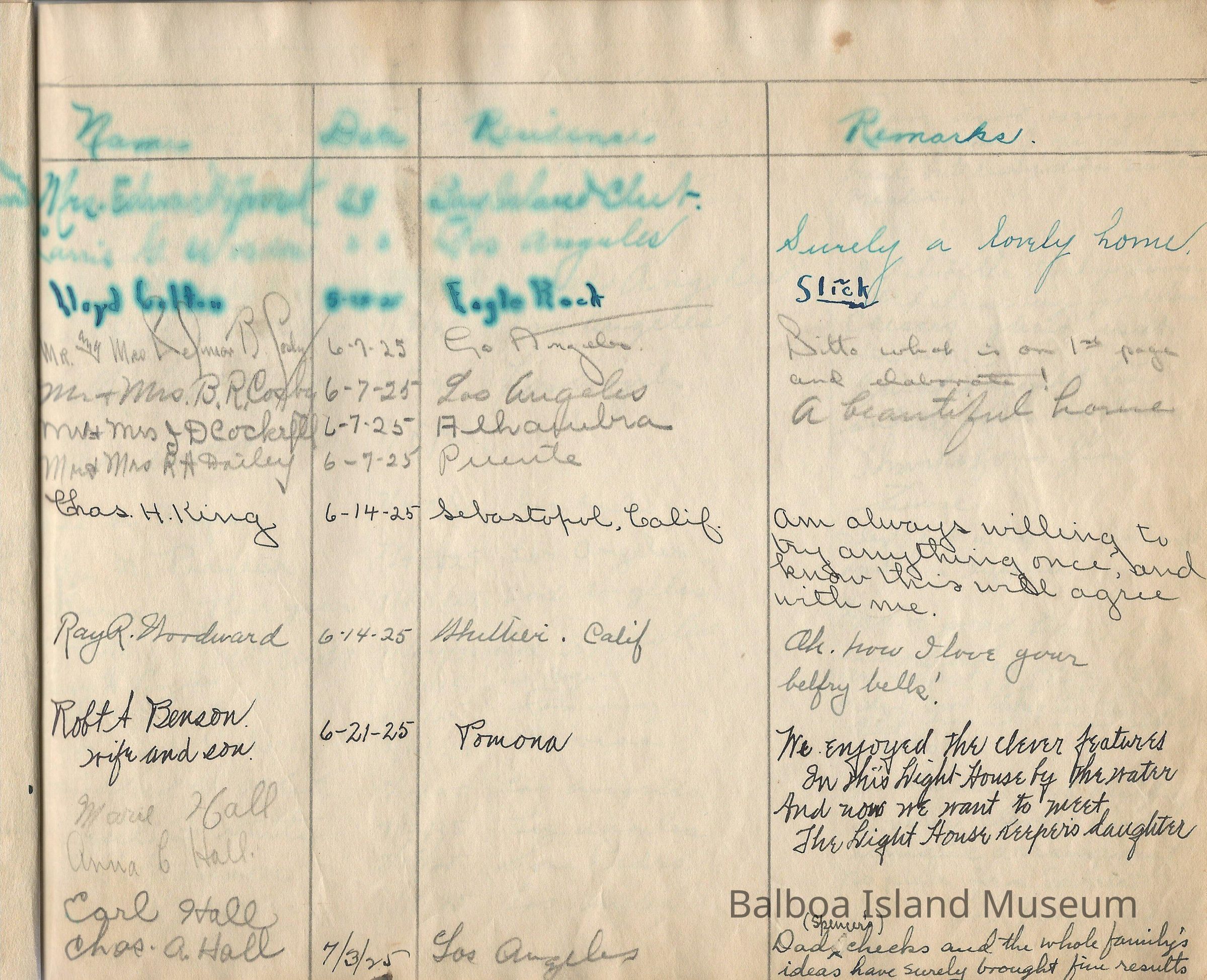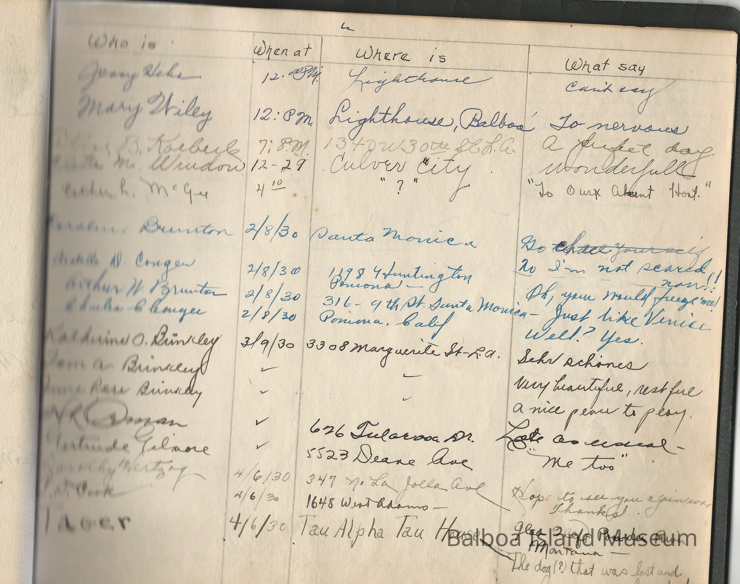 Log book showing visitor comments to the Lighthouse at 901 North Bay Front - 1925 to 1932