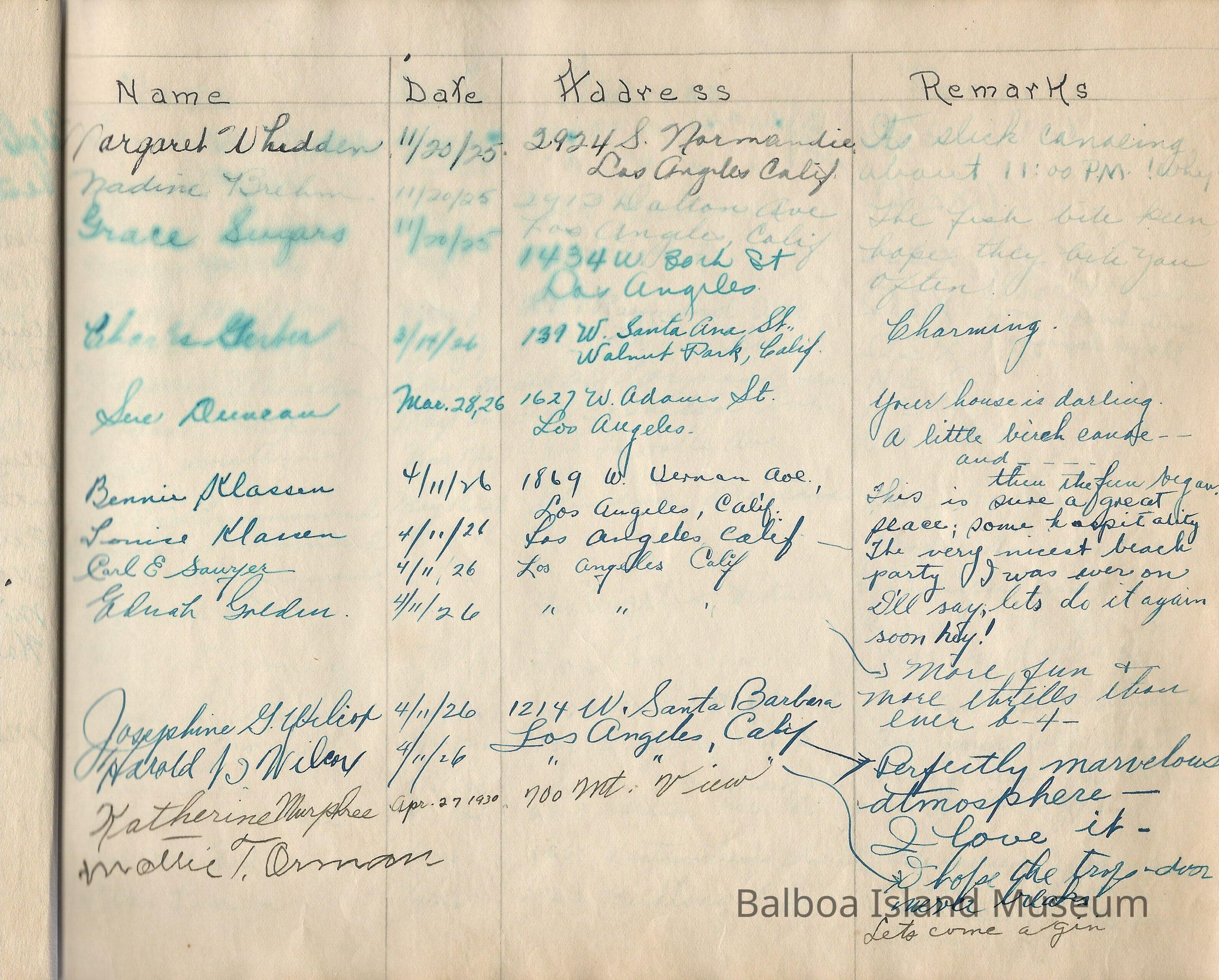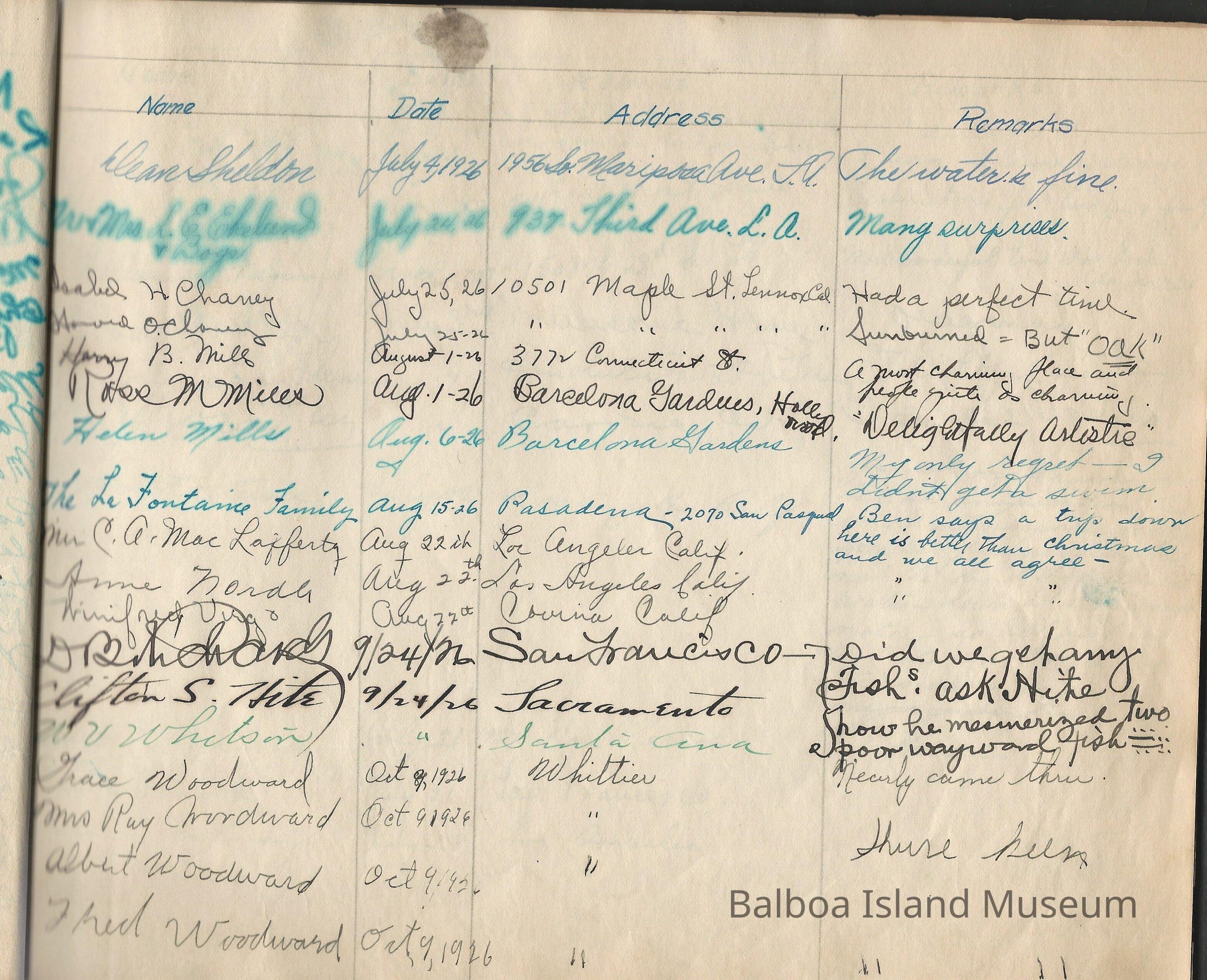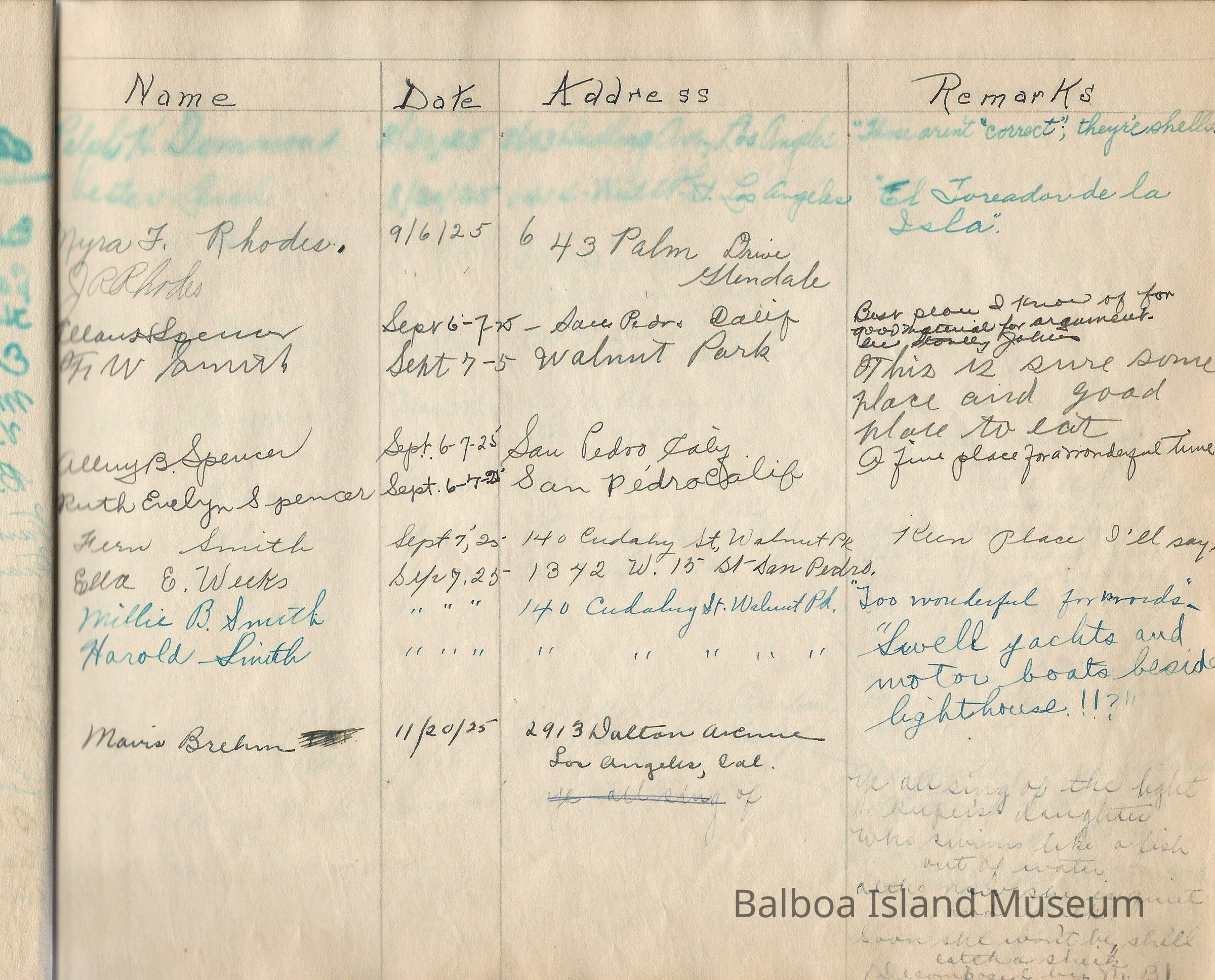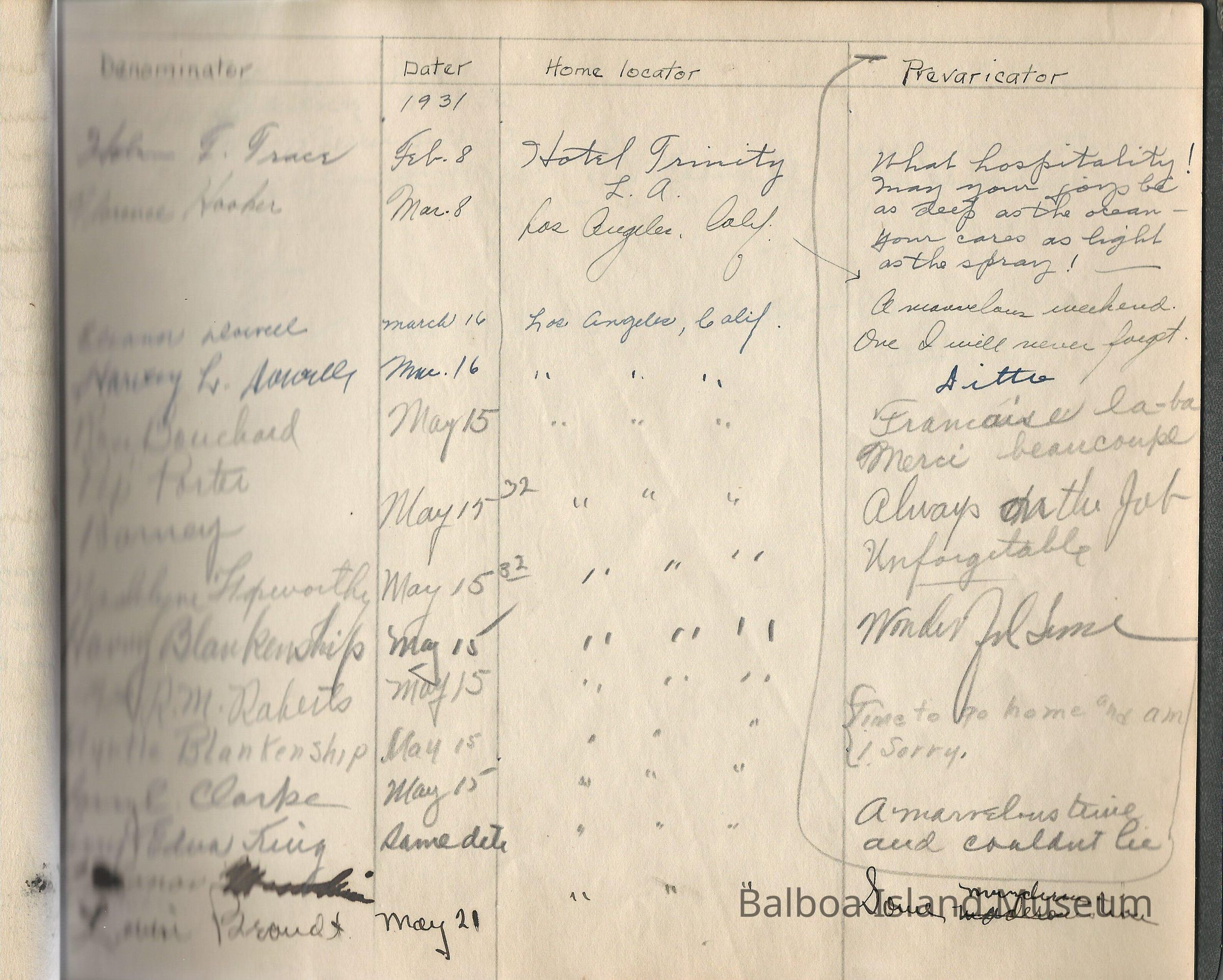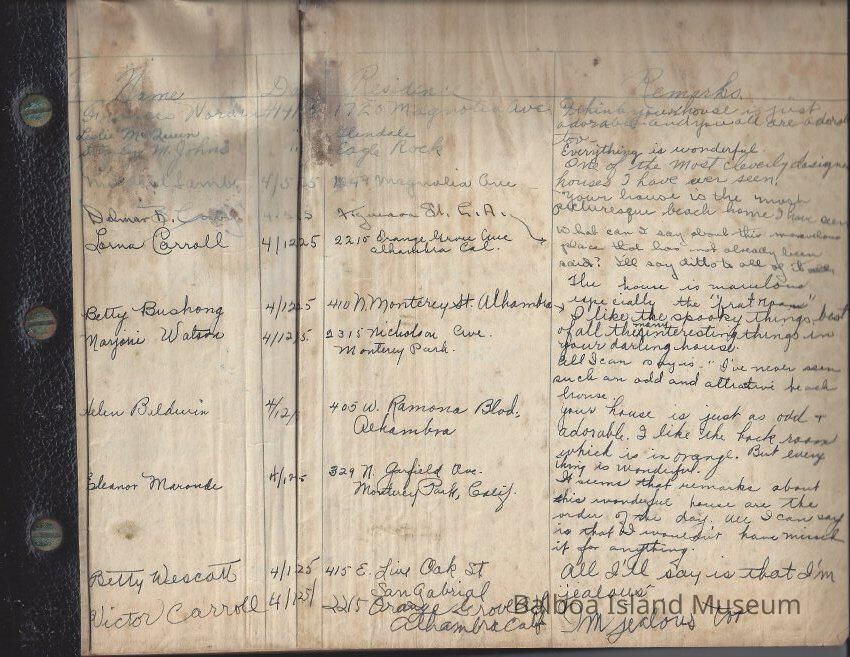 Log book showing visitor comments to the Lighthouse at 901 North Bay Front - 1925 to 1932