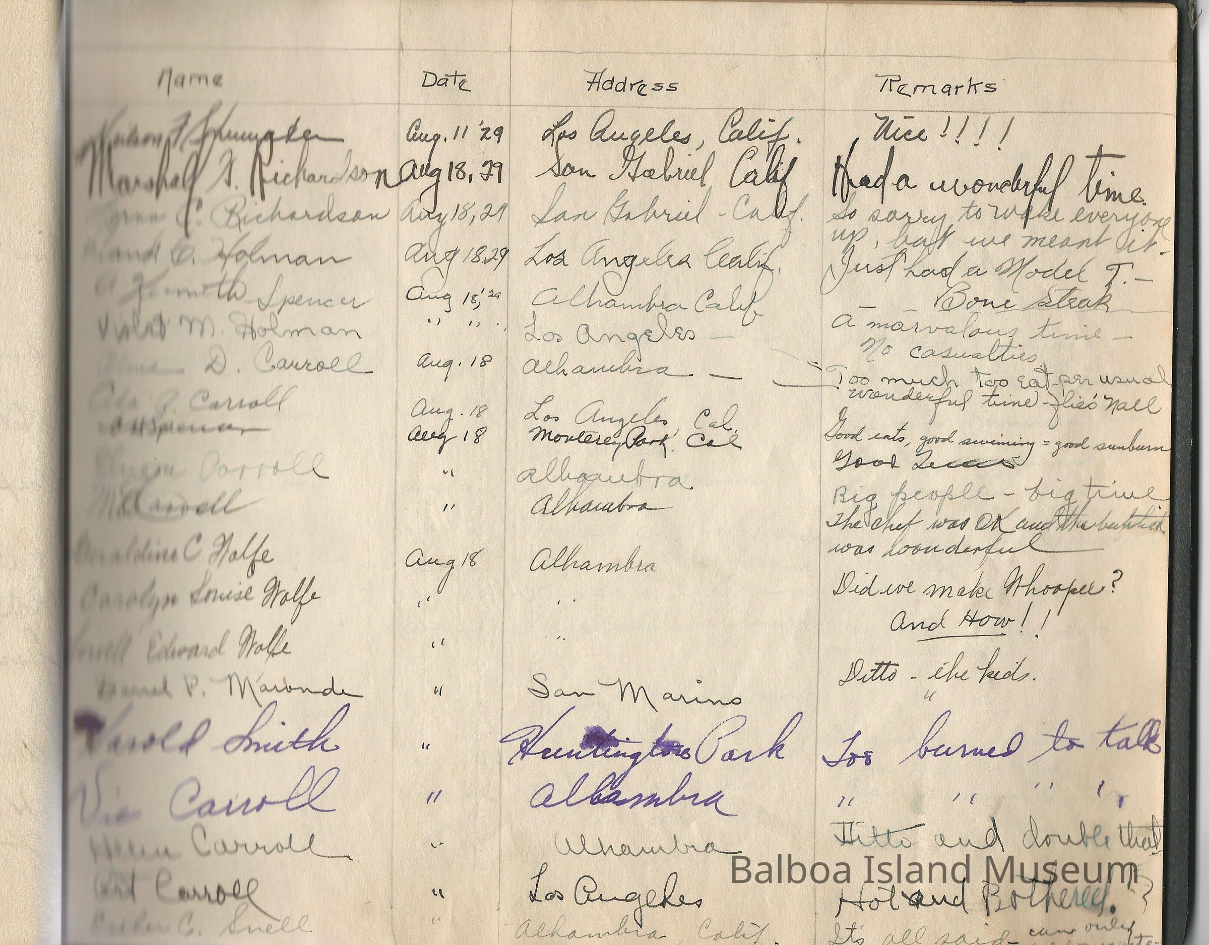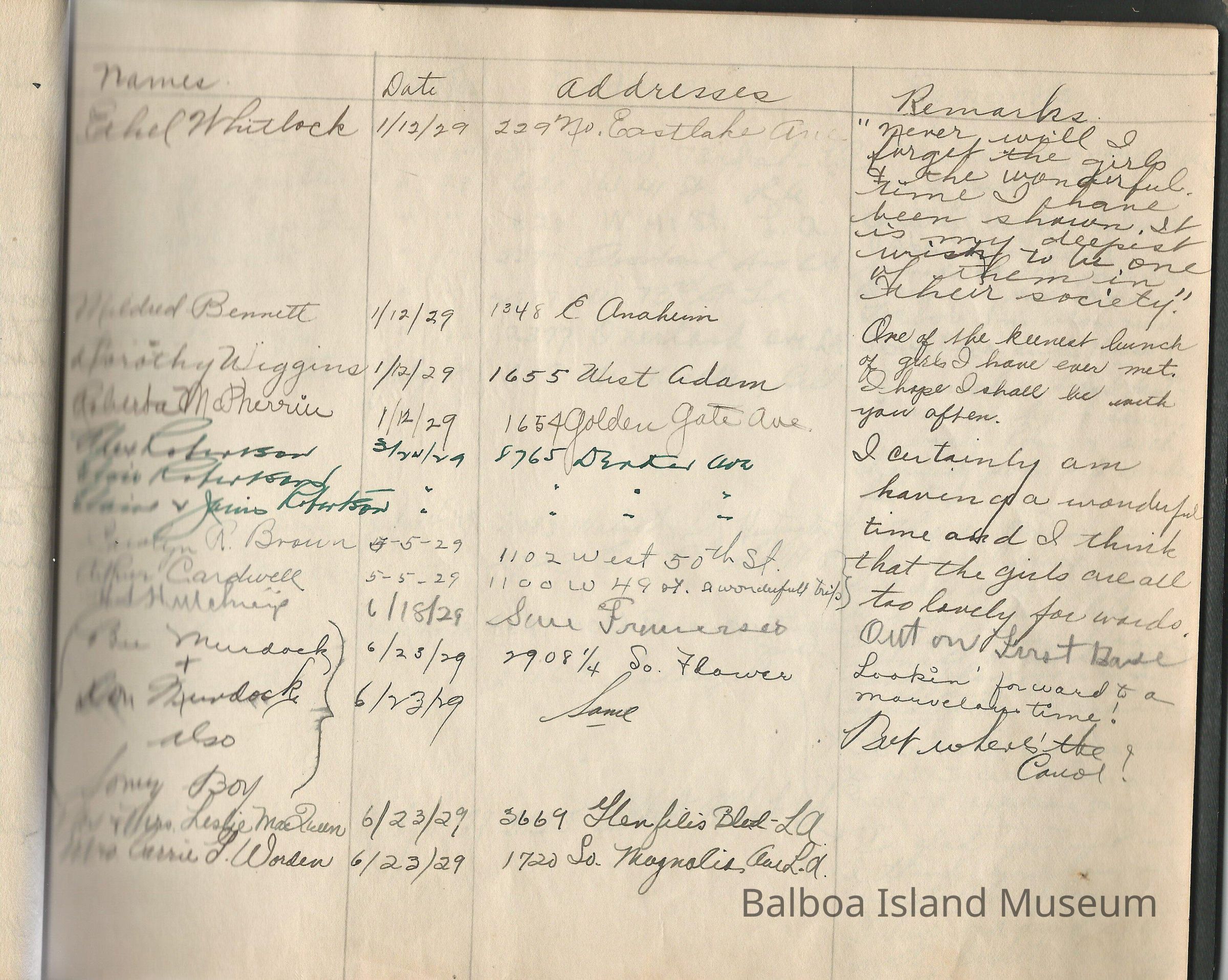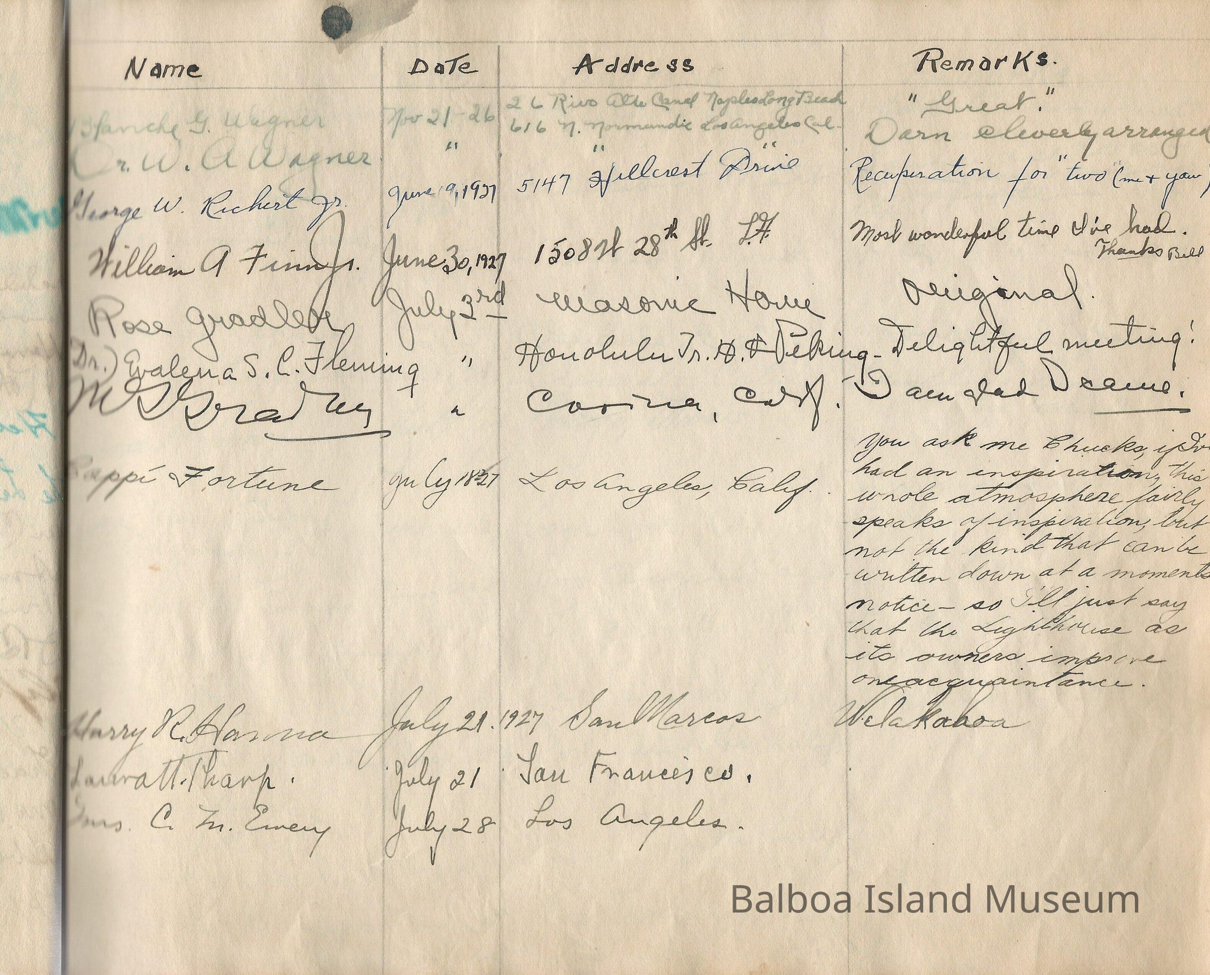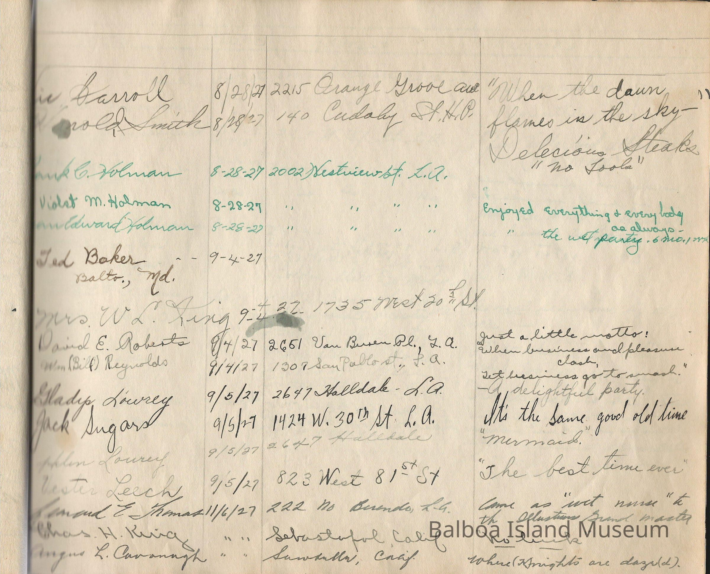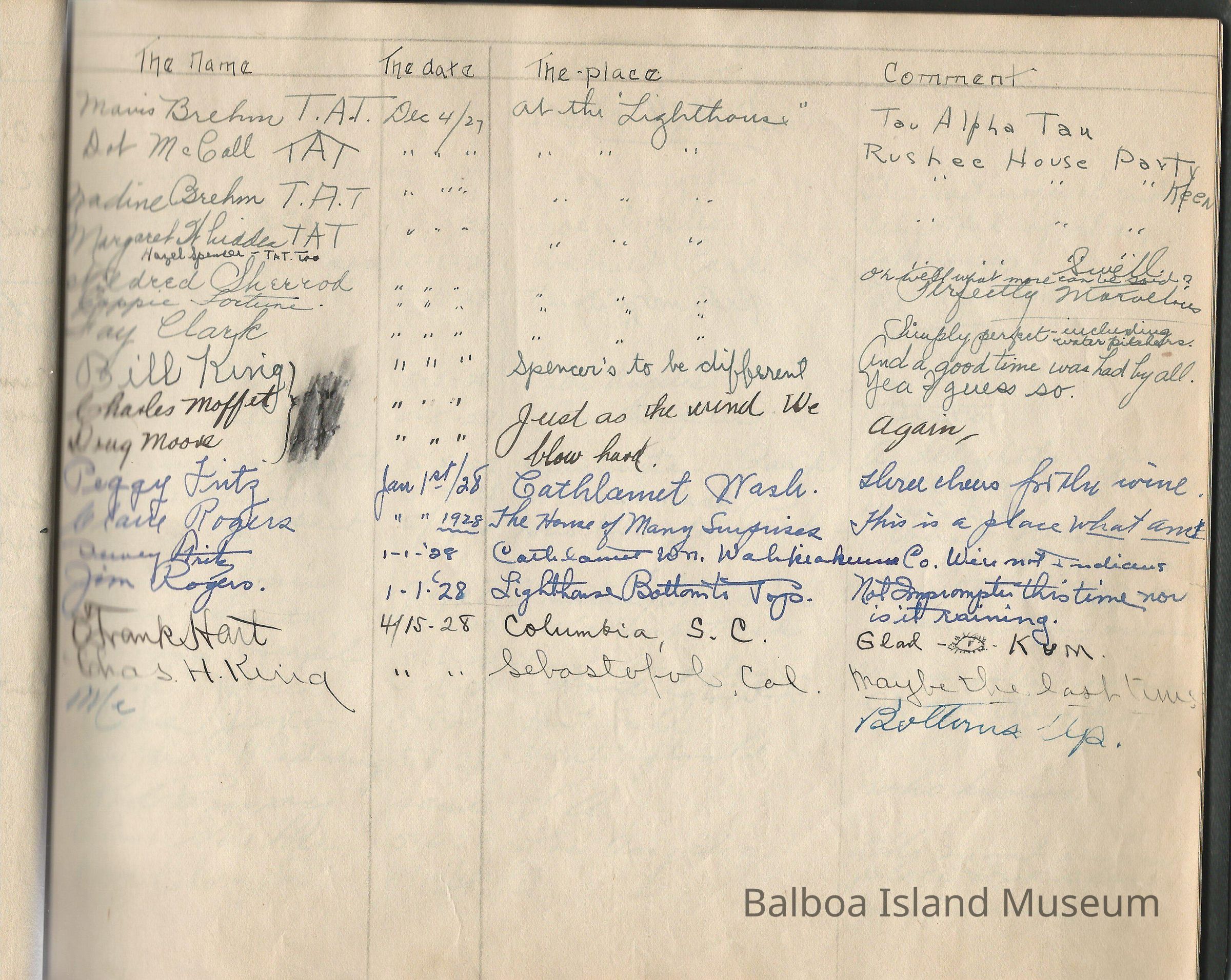 Log book showing visitor comments to the Lighthouse at 901 North Bay Front - 1925 to 1932