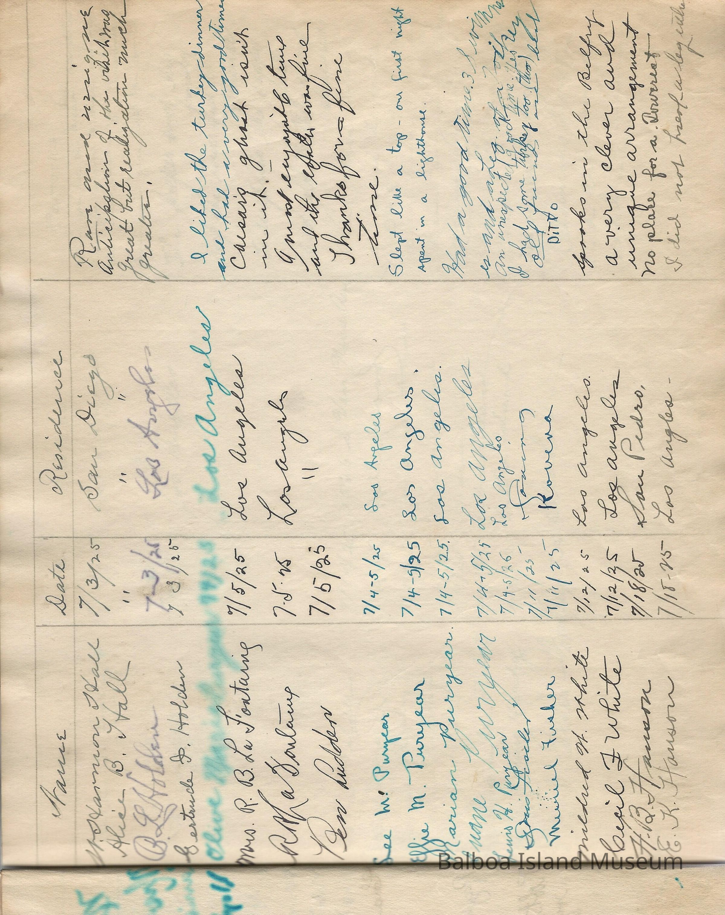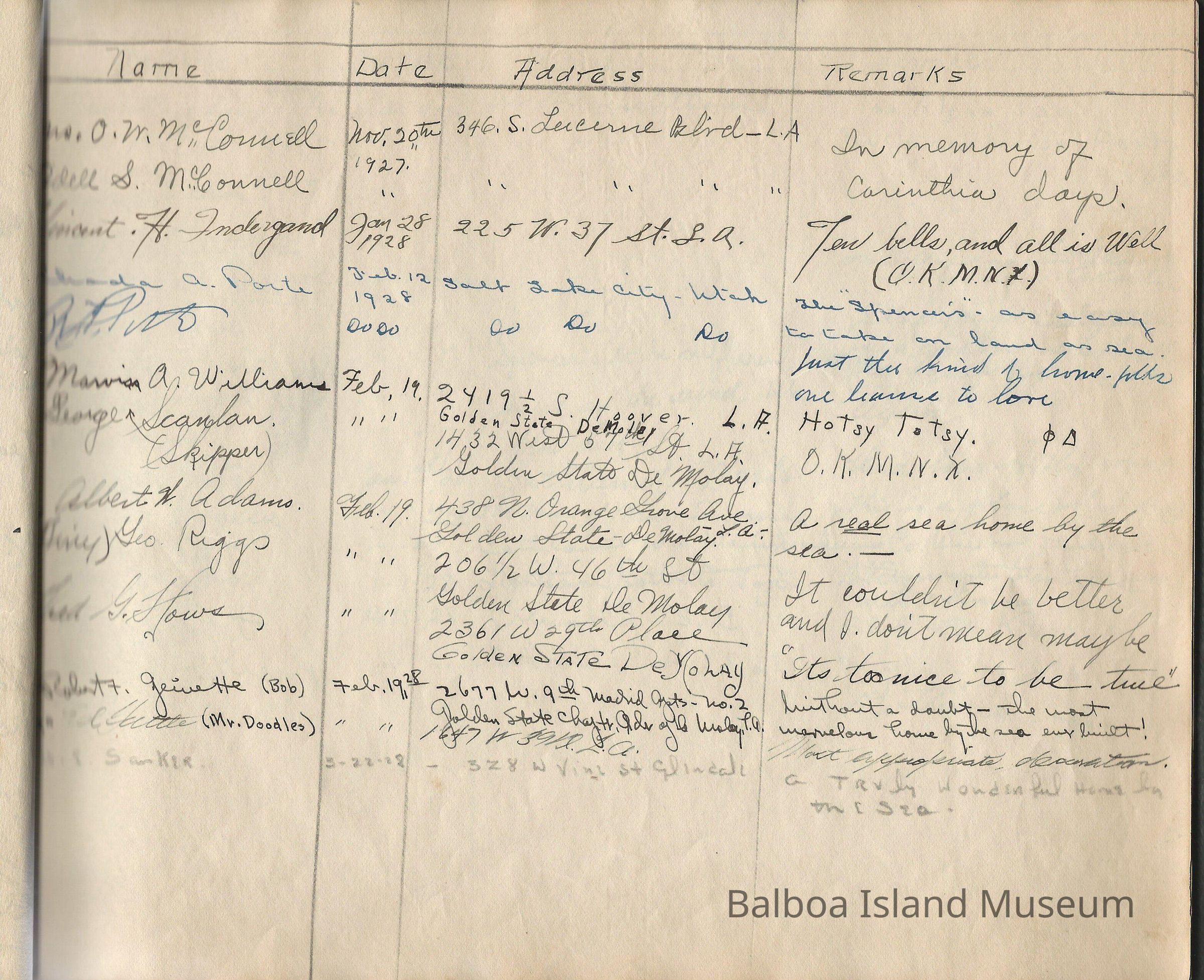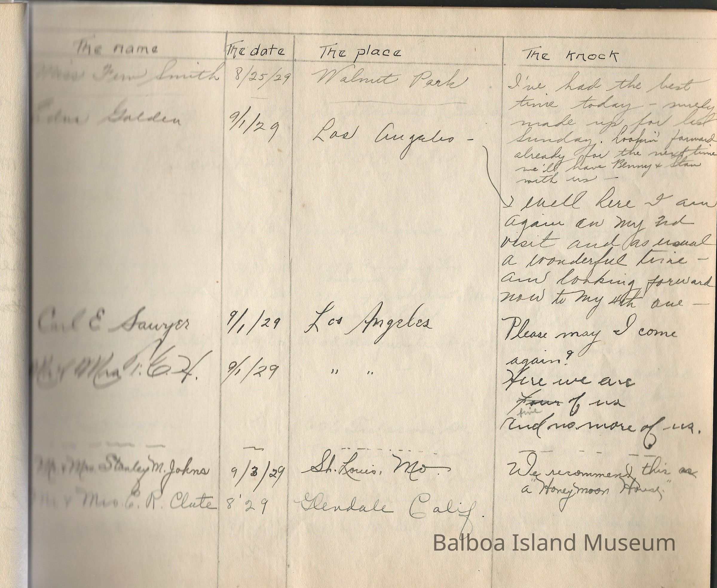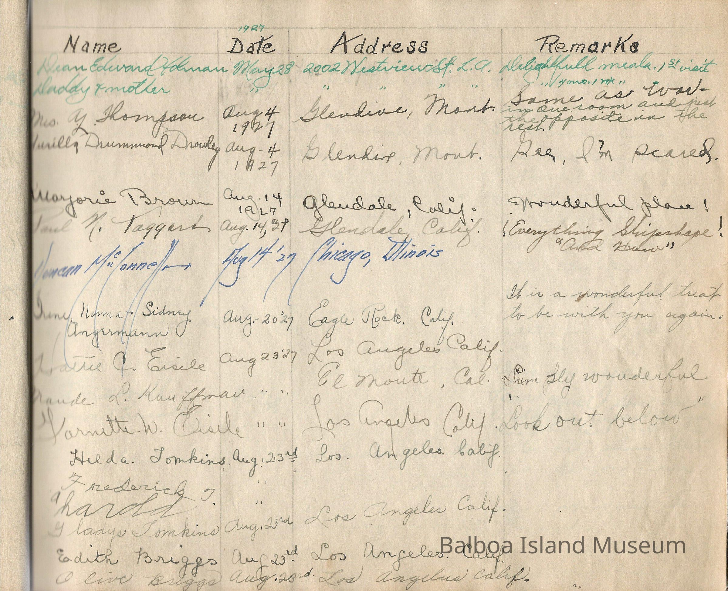 Log book showing visitor comments to the Lighthouse at 901 North Bay Front - 1925 to 1932